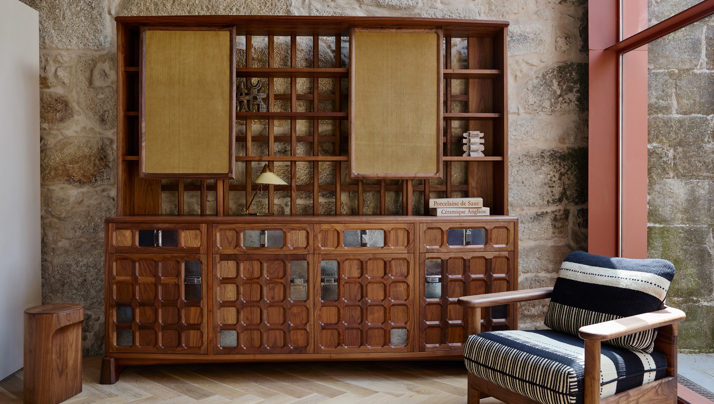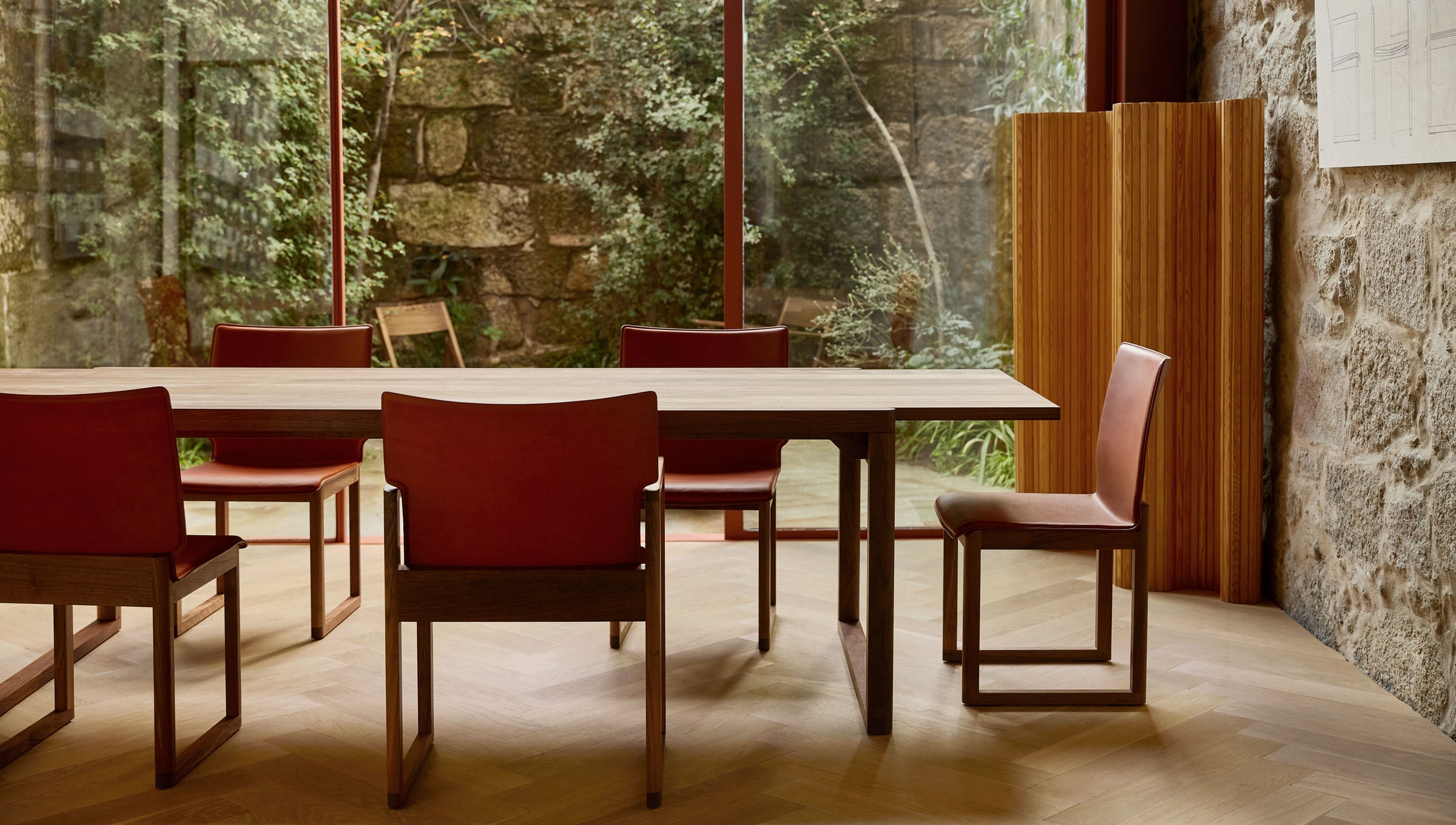 Select lounge chairs are available upholstered in Manta Lido, a traditional blanket from the Alentejo region of Portugal with an iconic Lido pattern. This very special textile is woven by hand from merino wool and available in a range of colourways.