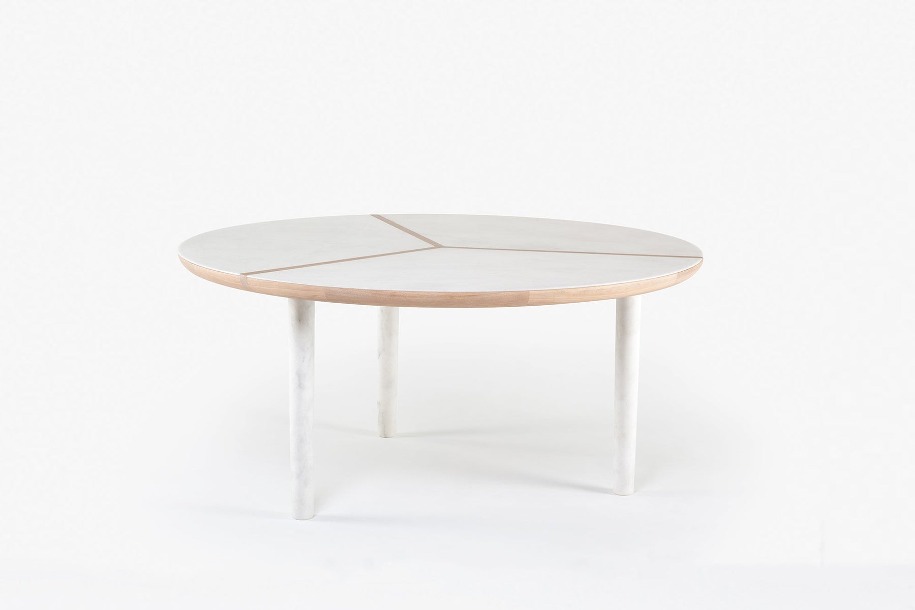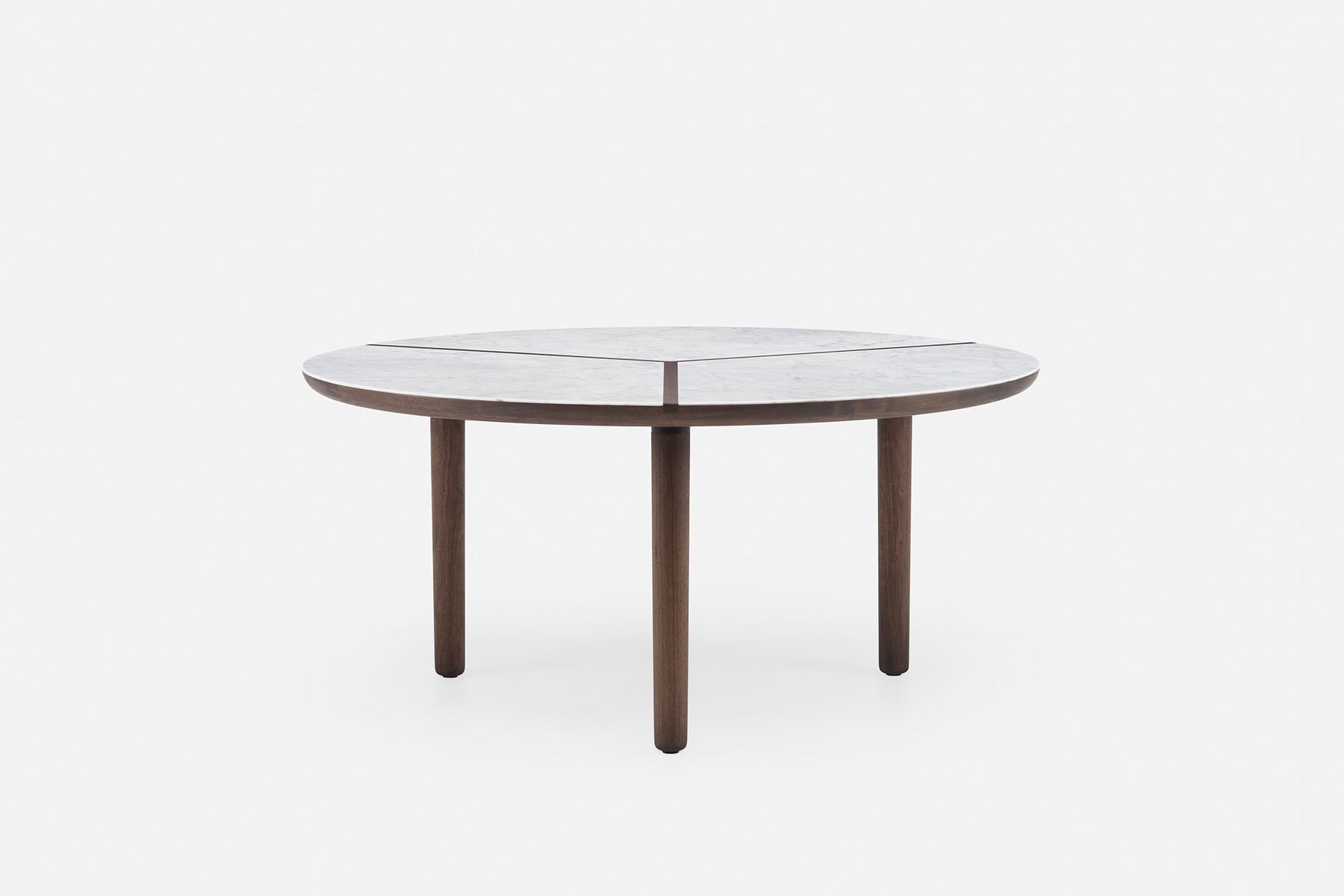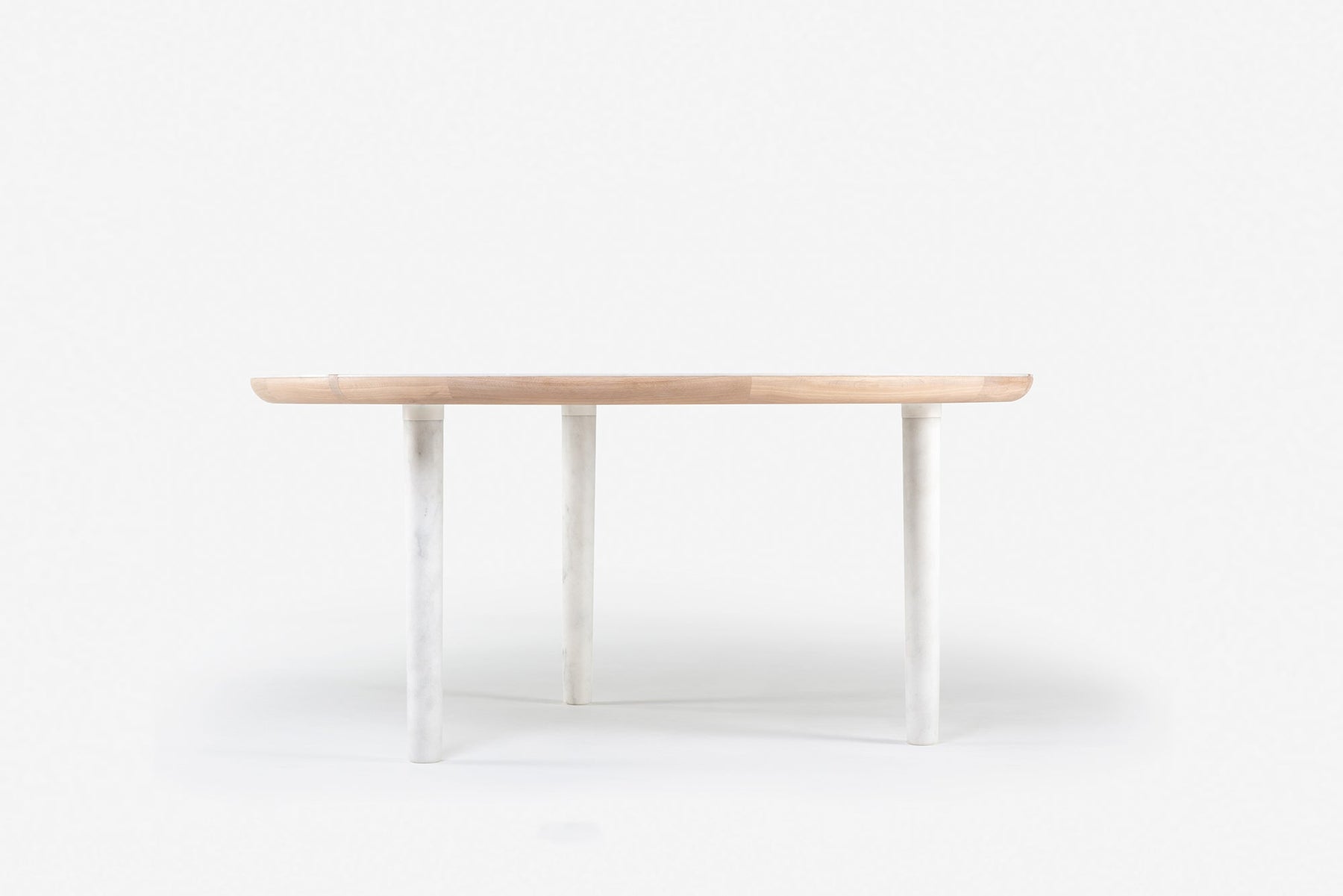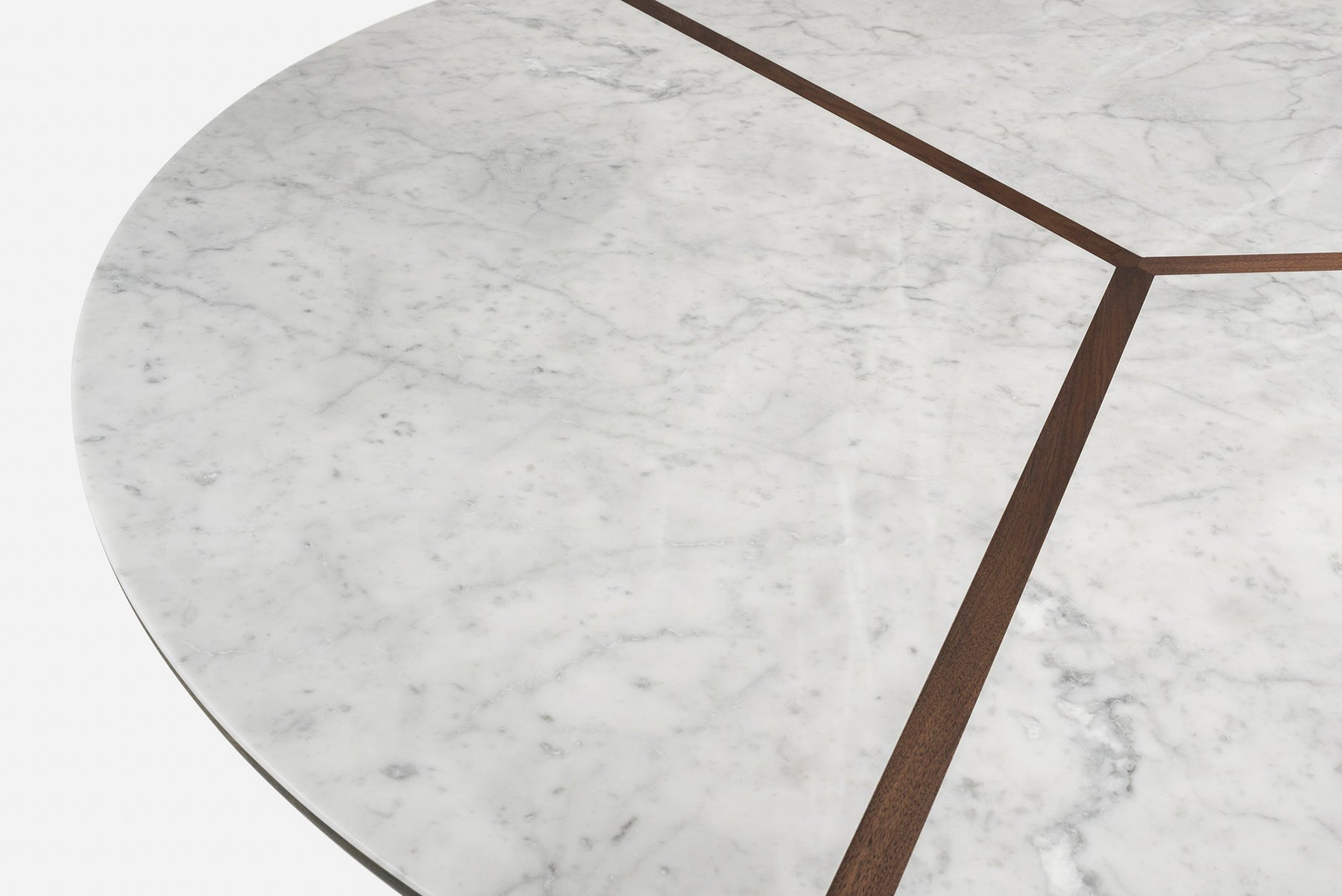 Marlon is a table with an understated form that highlights the beautiful contrast of materials. A timber frame supports a marble tabletop set upon slender legs in timber or marble for a table that is visually light yet extremely robust. Each table is formed from numerous segments, creating intriguing design details where the parts intersect.