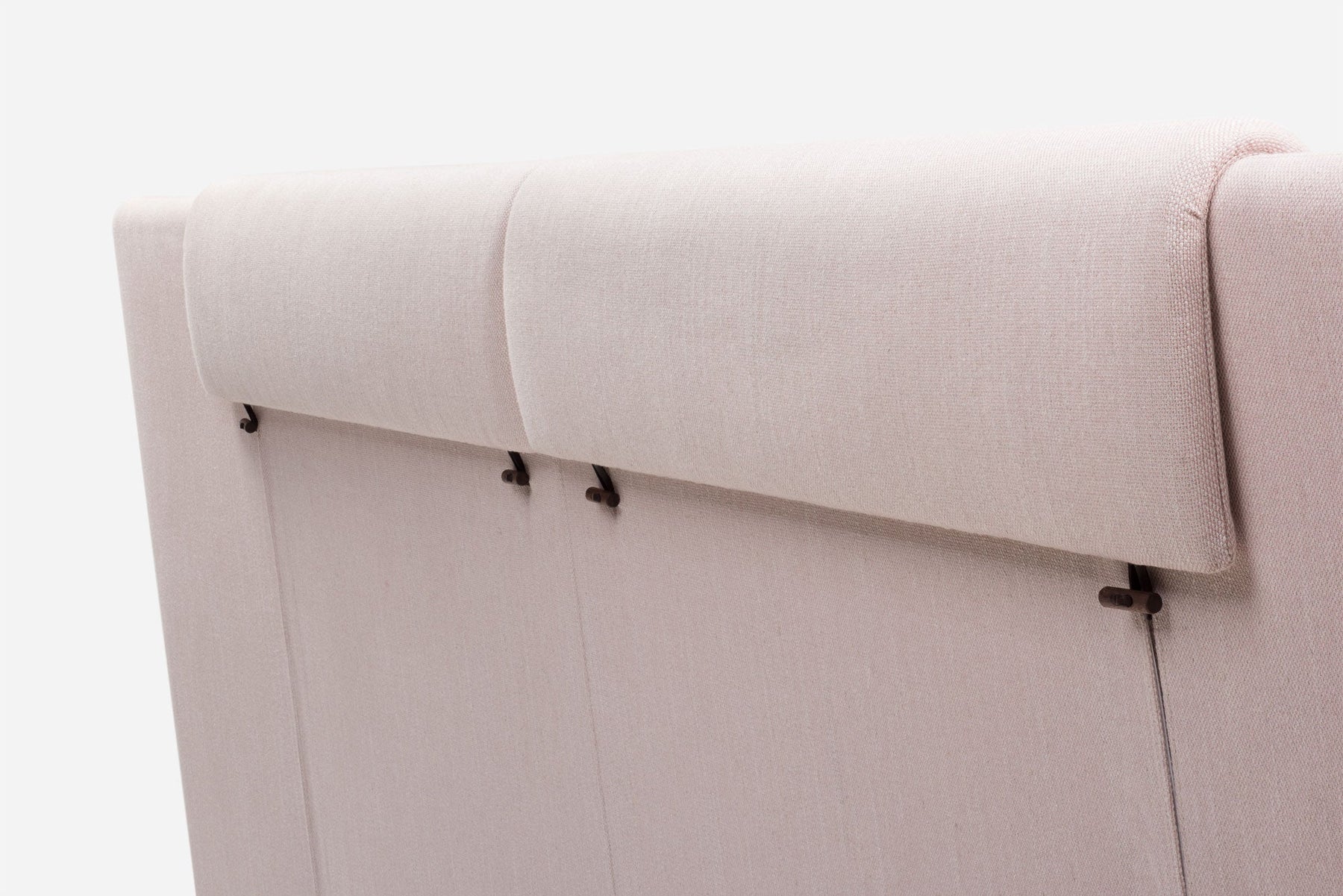 Please note that when using leather to upholster the expansive surface of the headboard, our craftspeople will use their discretion to ensure the natural variations in the hide’s colour and grain are most elegantly displayed. This may mean adding stitch lines to the headboard. Our craftspeople may also need to add a stitch line to the headboard when applying upholstery, such as those with a pattern or prominent texture, depending on the orientation of the roll.