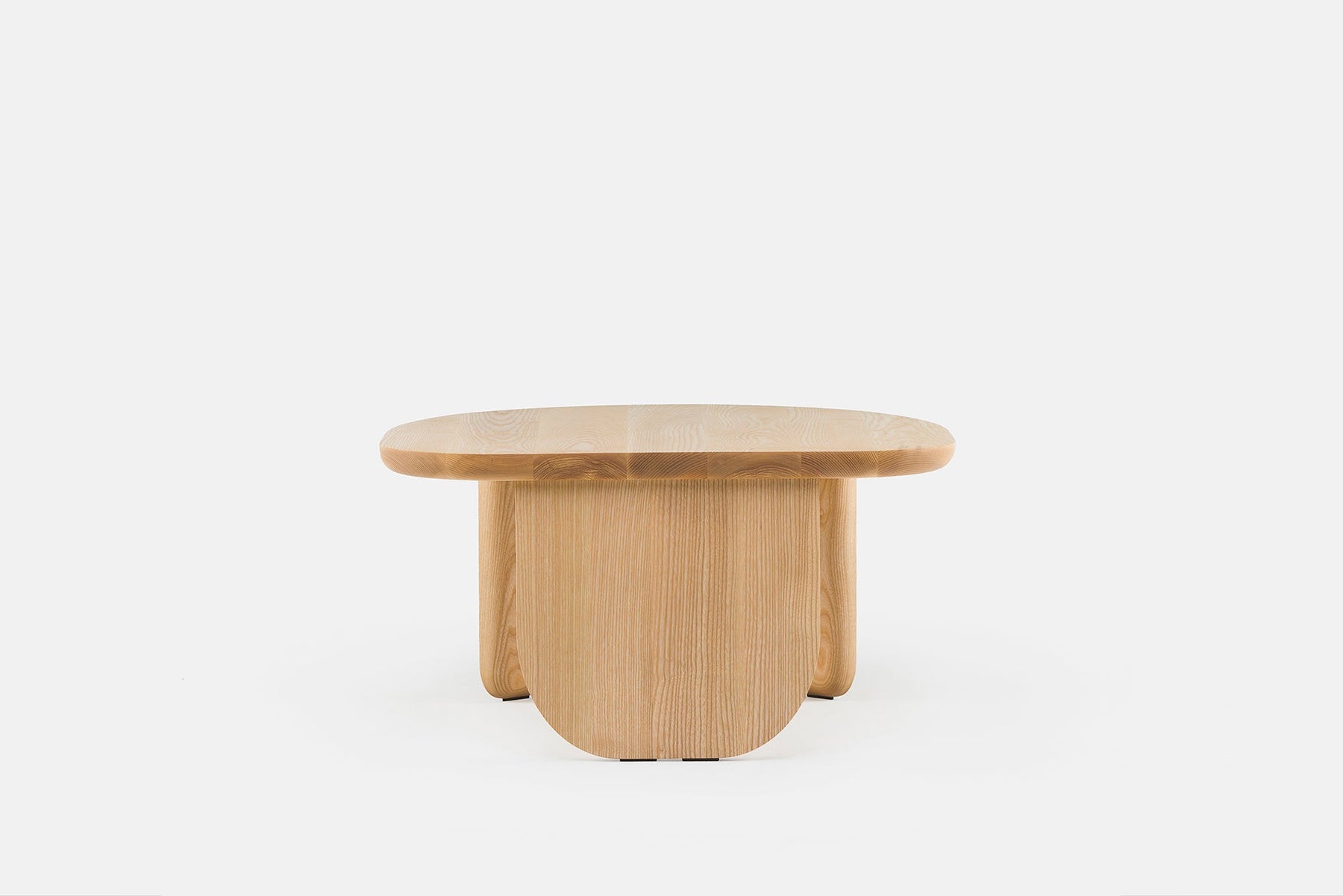 Kim Side Table, crafted in solid wood, has an elegant yet expressive form that reimagines the design language of 1950s American furniture. Part of a family of nesting pieces including a coffee table and bench.