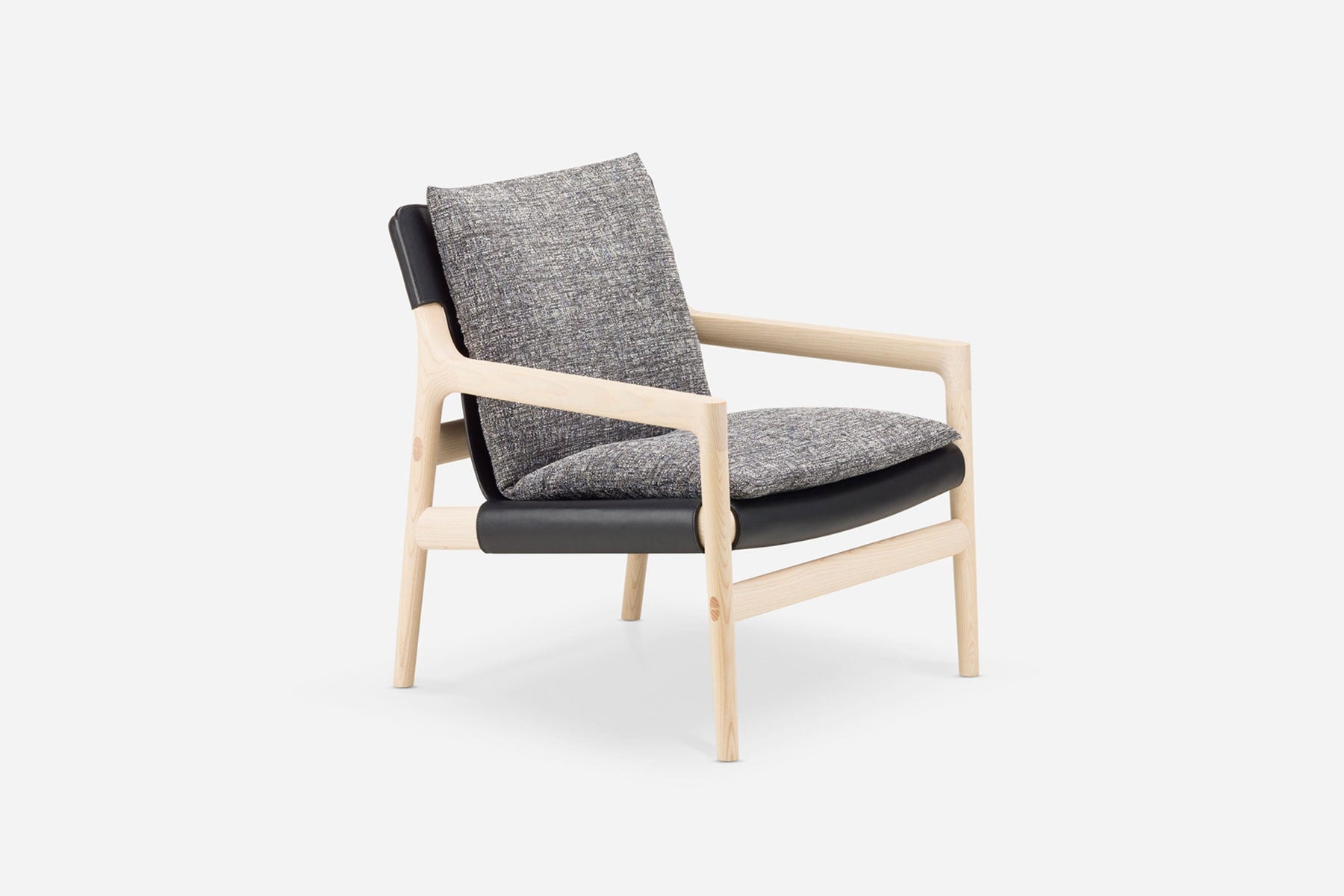 Sela lounge chair, designed by Luca Nichetto, reflects a passion for woodworking, with a tactile timber form with beautiful joinery. An exquisite leather seat, custom made by a Portuguese saddler, is suspended from the chair frame, then softened with upholstered cushions. Sela boasts an ageless appearance with a contemporary edge; the perfect blend of natural elements, craftsmanship, and timeless appeal.
