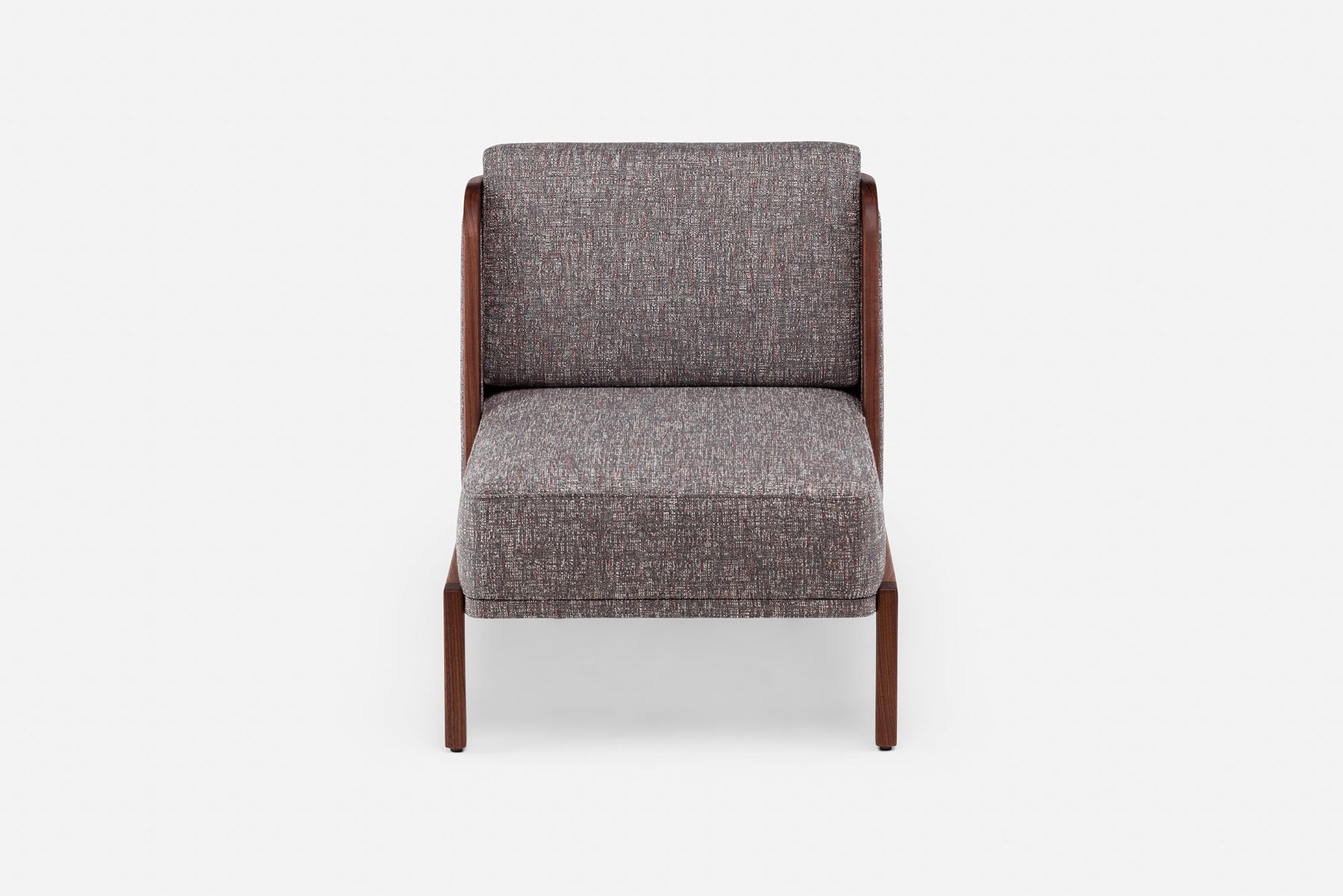Available in black walnut, white oak, or ash in a range of finishes, and a range of fabric and leather options. See menus below for further material information.