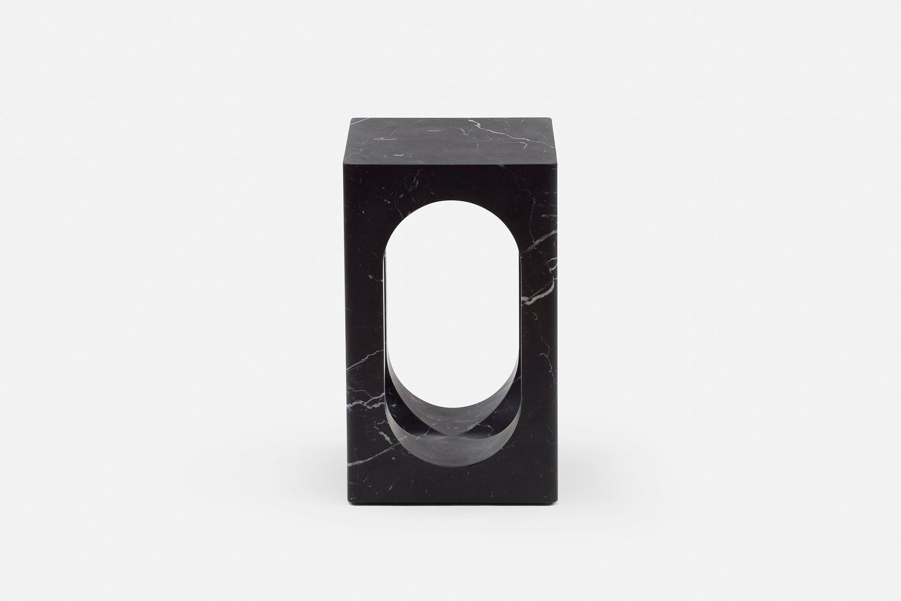 Carlo is a sculptural side table with a classical material and form. Carved from a single block of marble, the table has an architectural quality with its vaulted roof and floor that embraces the beauty and strength of the material.