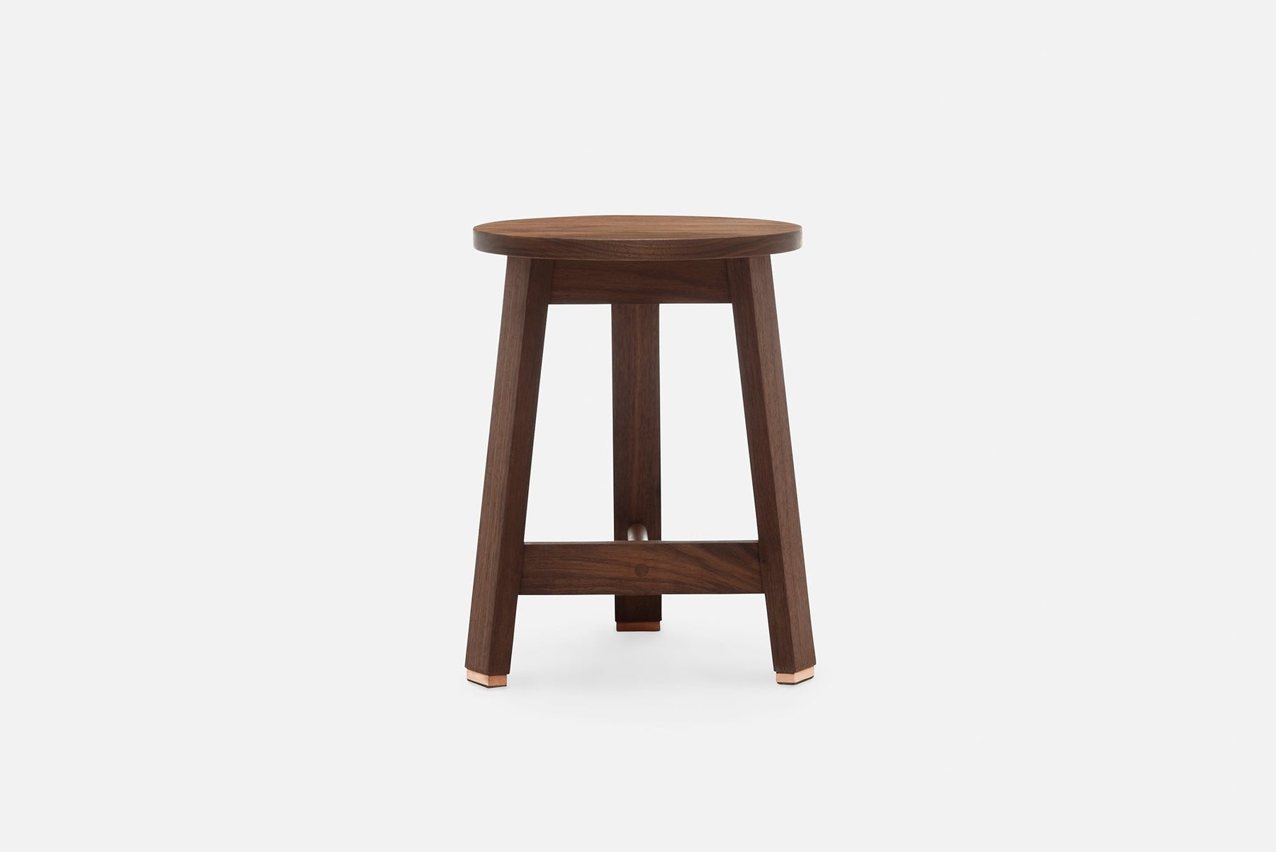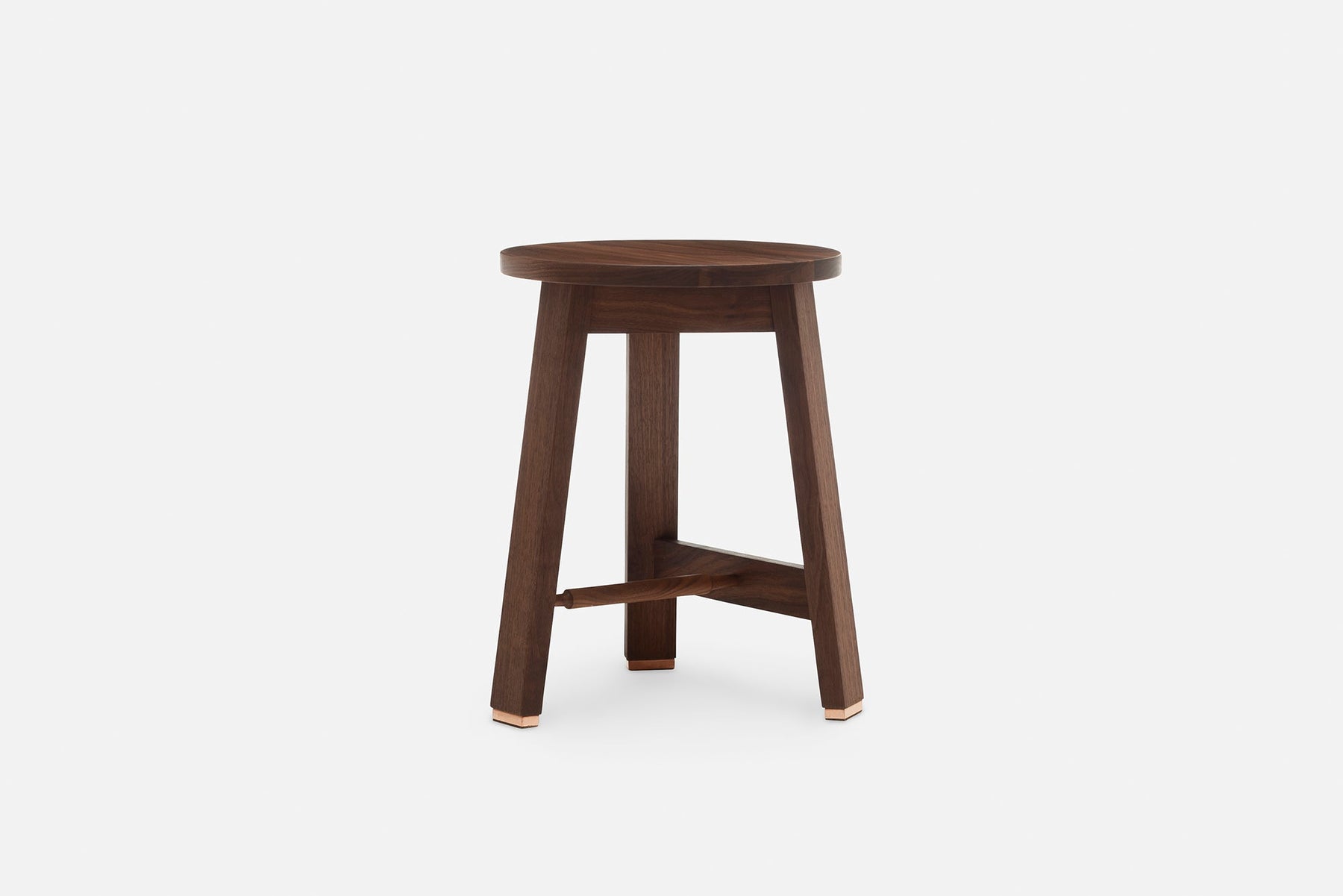 Available in black walnut, white oak, or ash in a range of finishes. Copper feet. See menus below for further material information.
