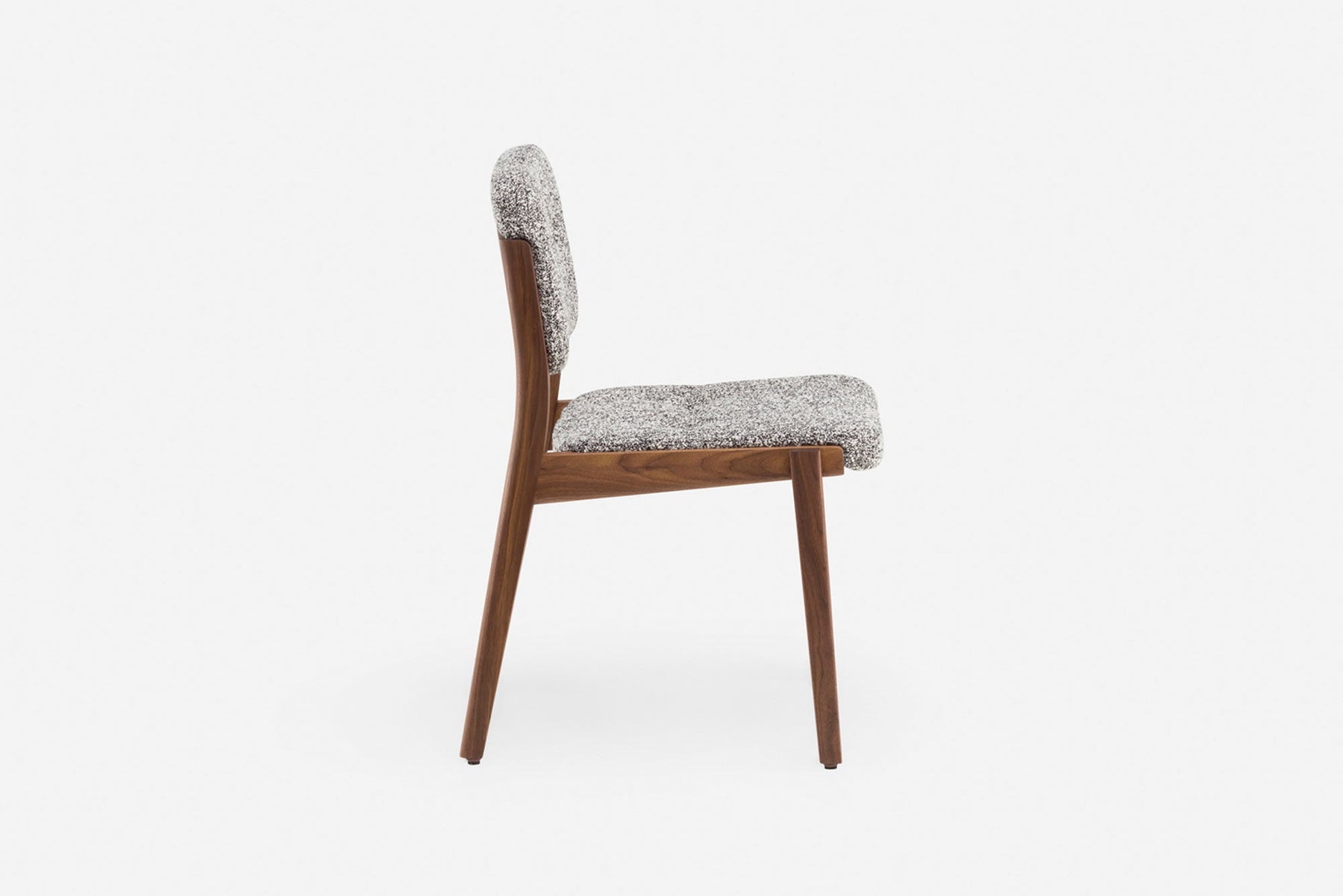 Available in black walnut, white oak, or ash in a range of finishes, and a range of fabric and leather options. See menus below for further material information.