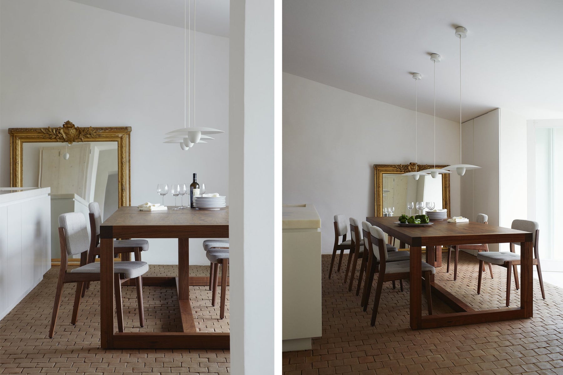 Timber is sustainable solid wood from North America or Europe, offering long-term repairability of the surface. Natural colour and grain variations in every plank make each piece an individual. Traditional wood joinery bonded with wood glue ensures structural integrity. All finishes are non-toxic and applied by hand, sprayed or rubbed.