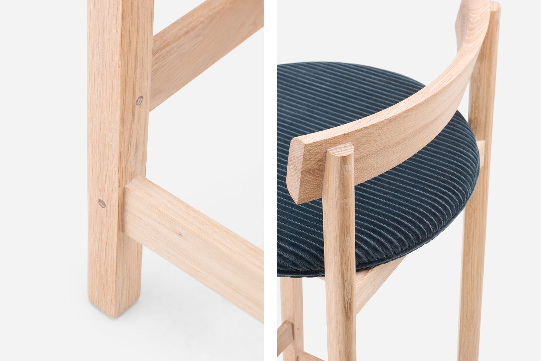 Compact with a solid wood frame and upholstered seat, the Petit Bar Stool is an extension of the Petit series of chairs that were specially designed by Neri&Hu as part of their interior design for Papi restaurant, Paris.