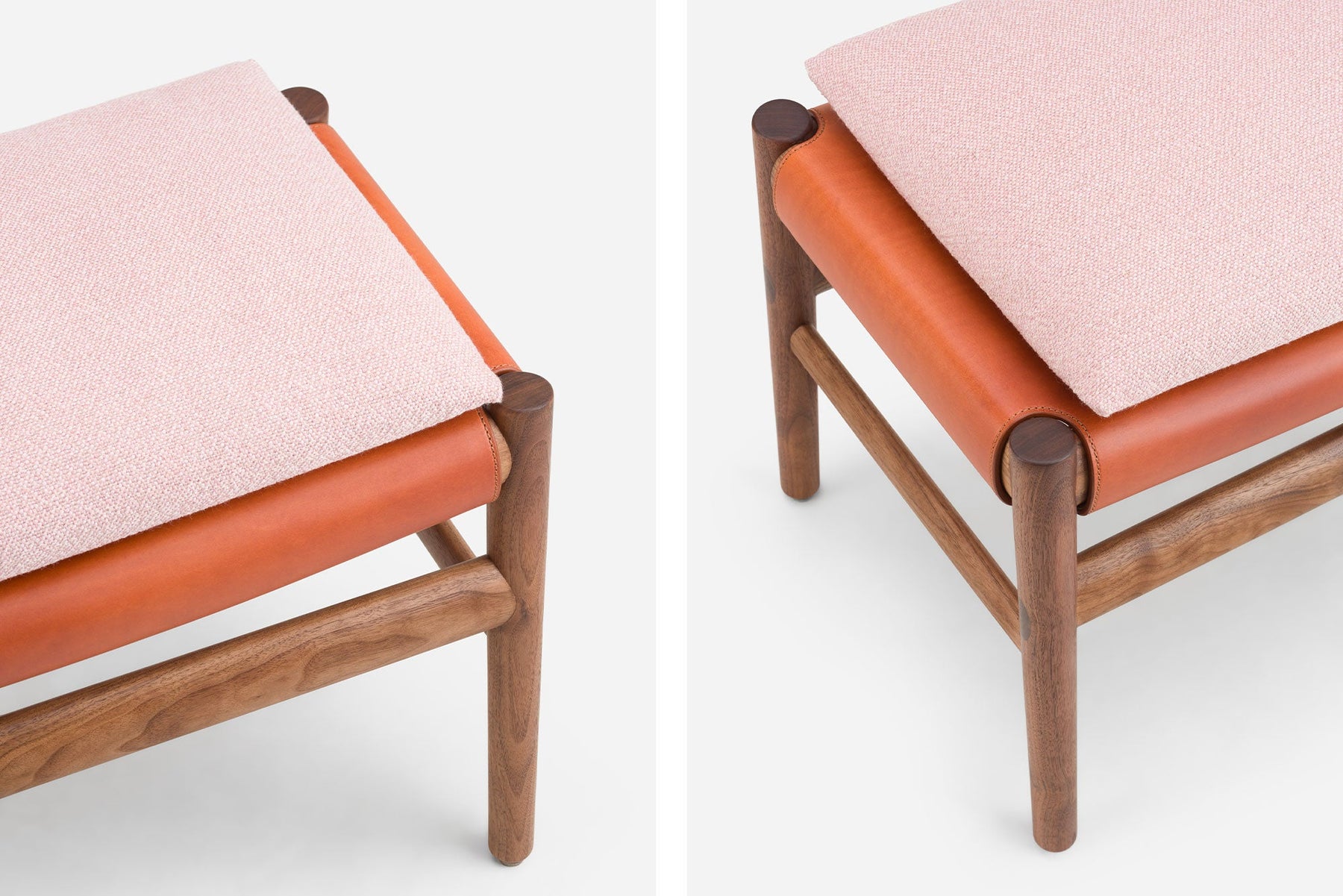 Sela Bench embraces generations of craft wisdom across a range of disciplines: a tactile timber form with beautiful joinery reflects the virtuosity of De La Espada woodworkers; an exquisite leather seat is made using heritage Portuguese saddlery craft; and cushions are expertly tailored by skilled upholsterers. Sela boasts an ageless appearance with a contemporary edge; the perfect blend of natural elements, craftsmanship, and timeless appeal.
