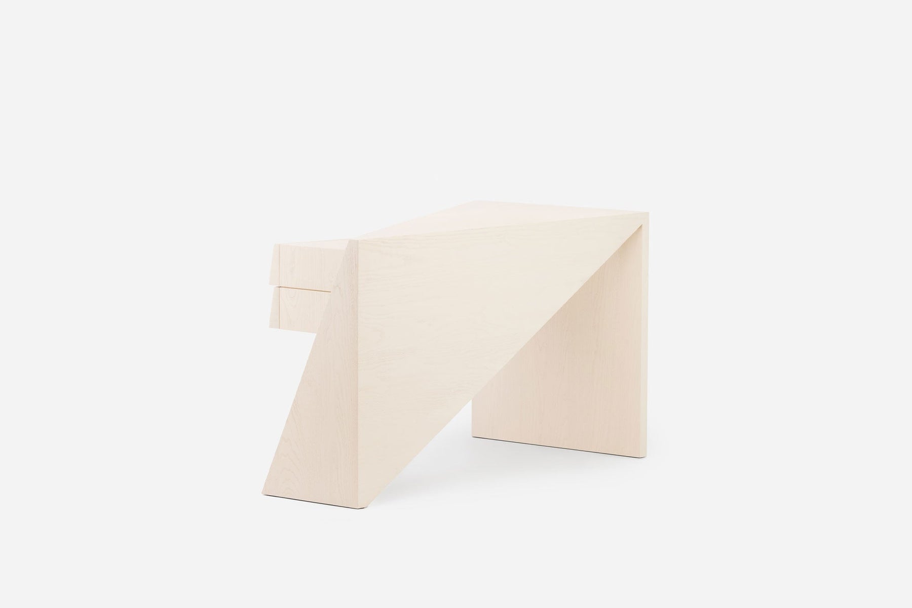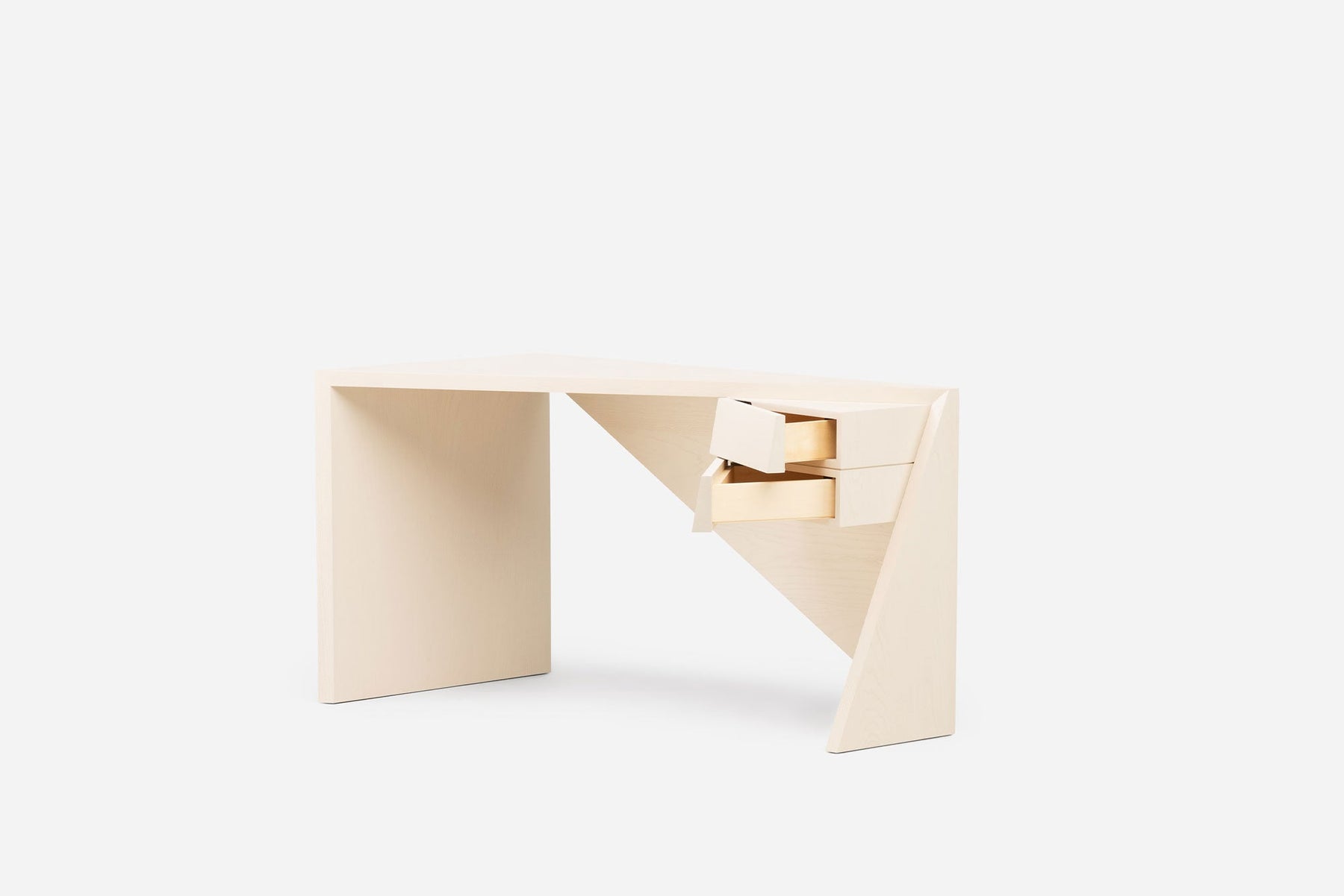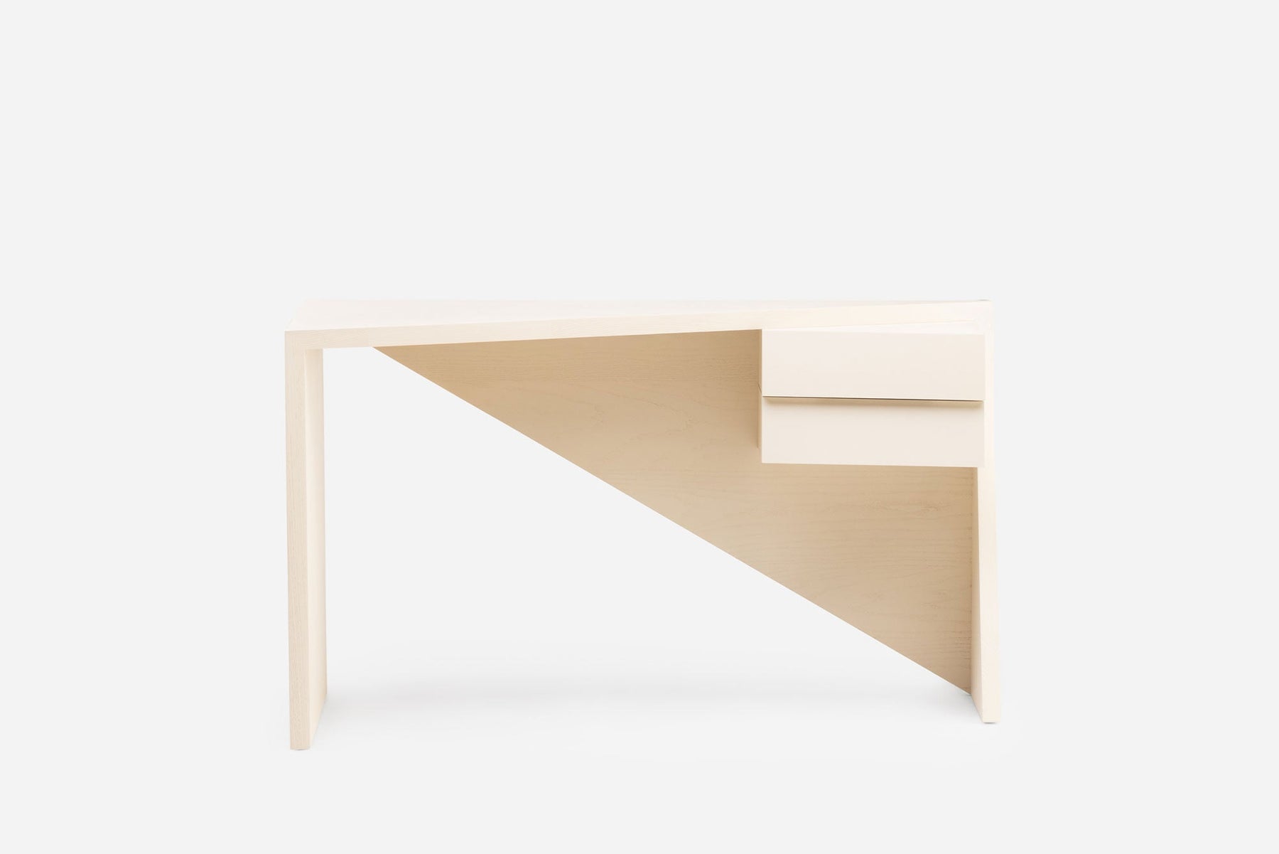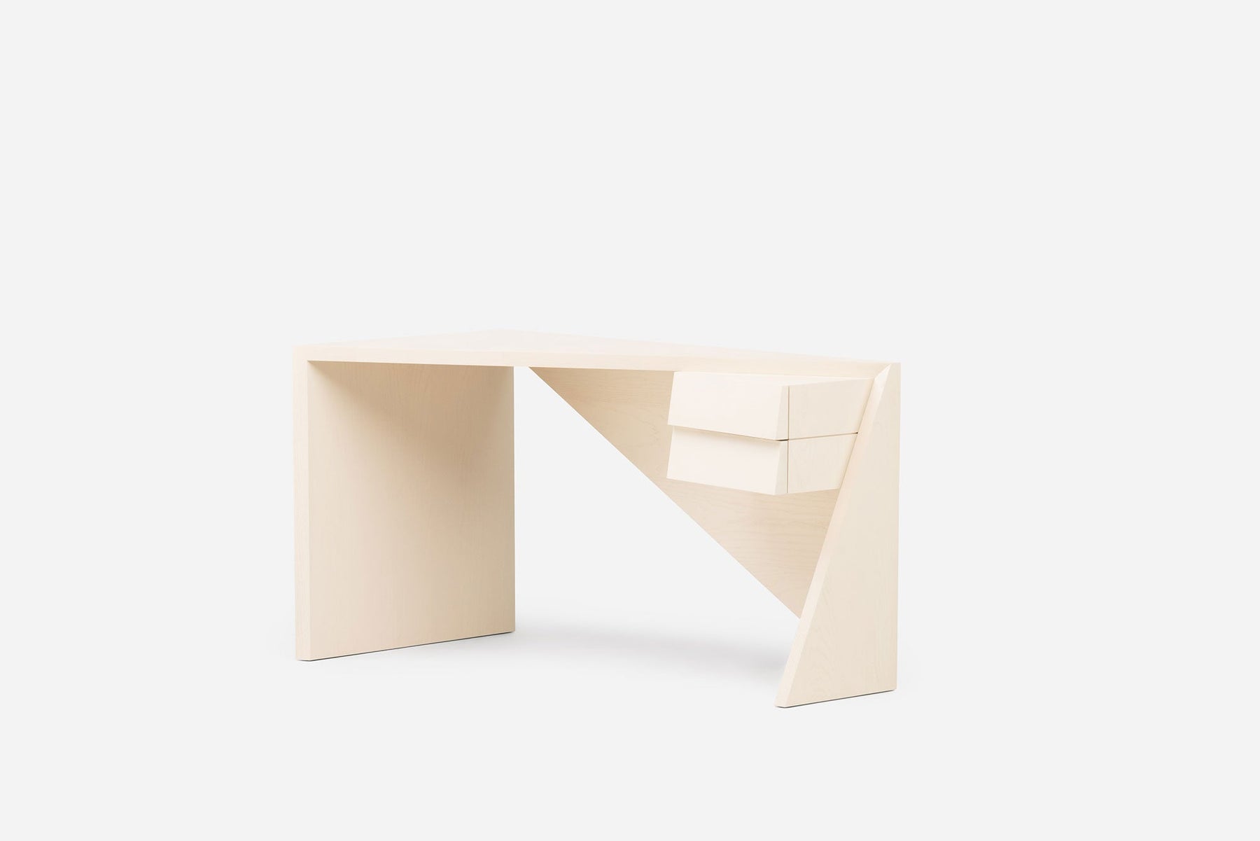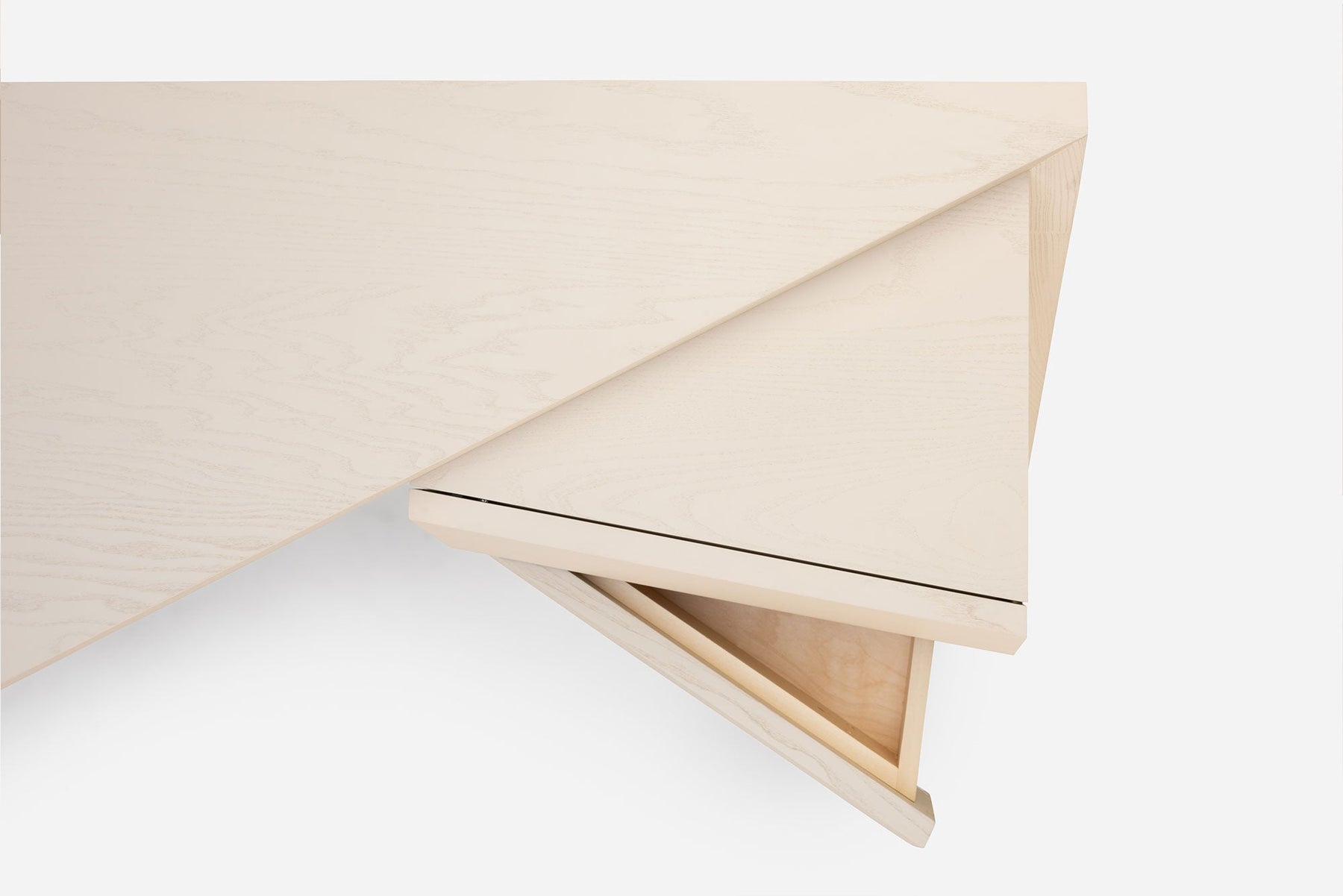 Appearing to defy gravity, Deneb has a striking form that challenges traditional notions of desk design, embracing an innovative triangular motif that evokes a sense of energy and movement in a functional piece. The playfulness of angles and lines reflects a deliberate intention to infuse life and excitement into this typology of furniture. The desk can be specified as a left or right hand orientation, according to the placement of the two drawers. It pairs well with the Altair Chair or the Vega Chairs.