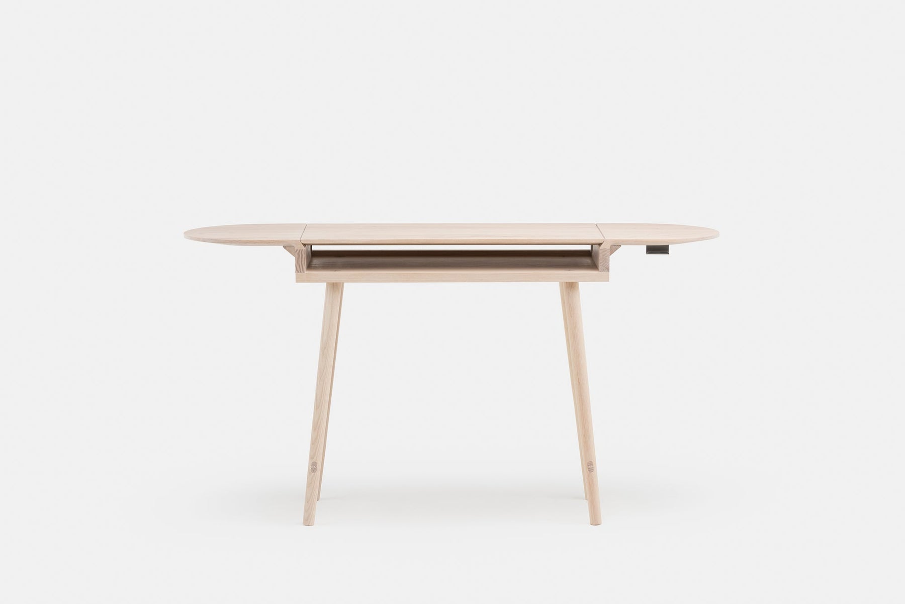 The hinged tabletop is soft-closing.
