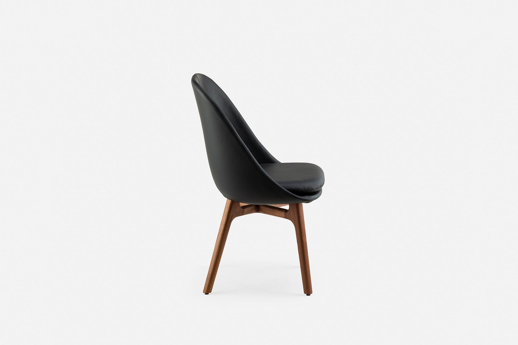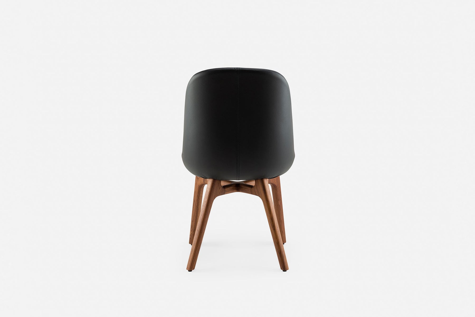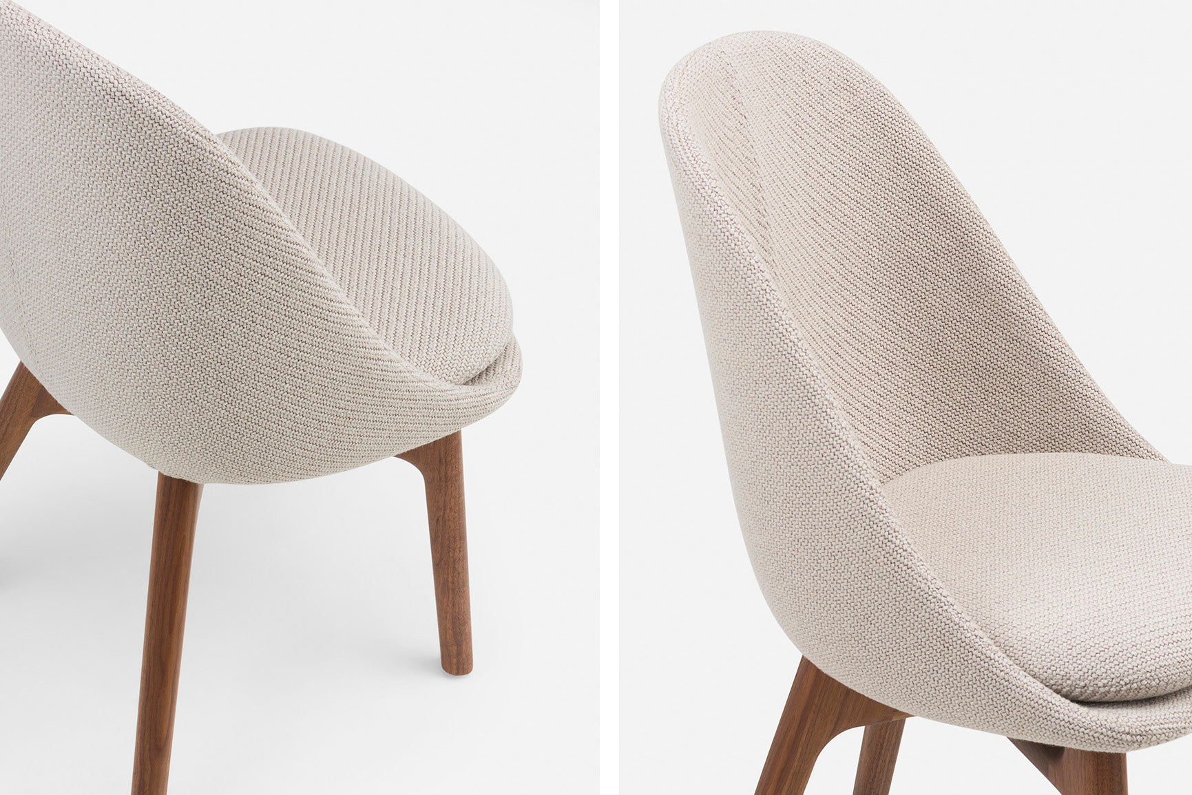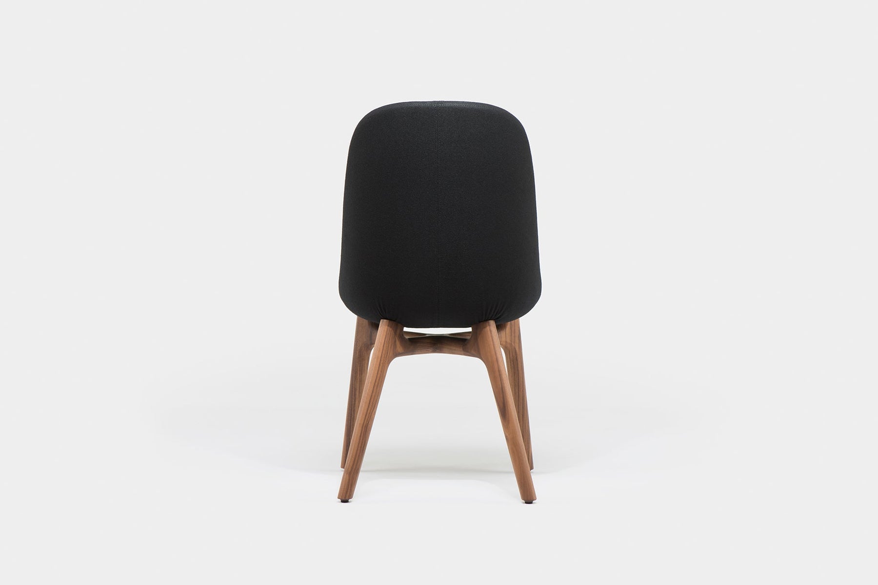 Inspired by the Eames Shell Chair, the Solo Chair is an updated version that transforms the early industrial look of the Eames iconic chair into a sophisticated, comfortable chair that is suitable both in domestic and commercial settings. Solo chair has an upholstered shell that hugs the sitting body to create a microcosmic universe for the person, becoming an object of shelter and refuge, where the person can be “solo” and undisturbed while being hugged in this position.