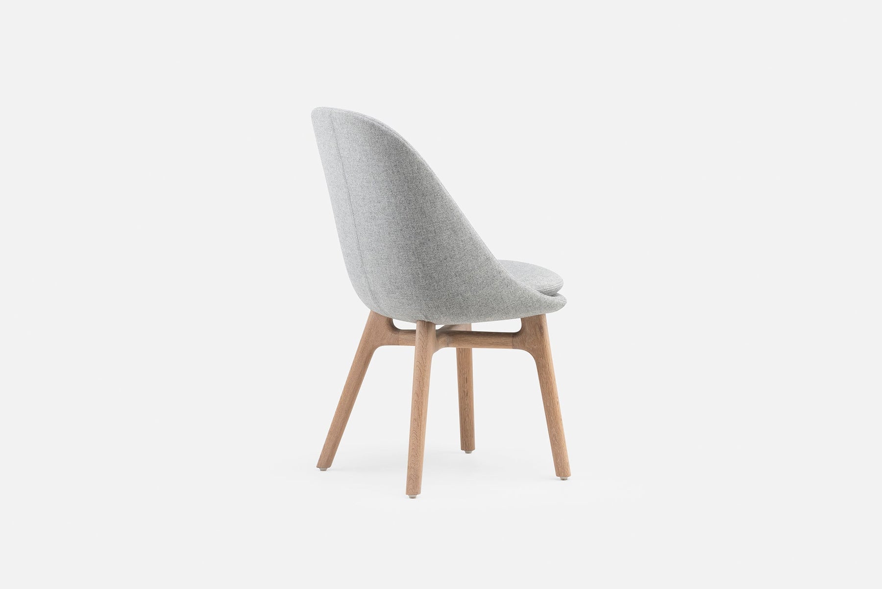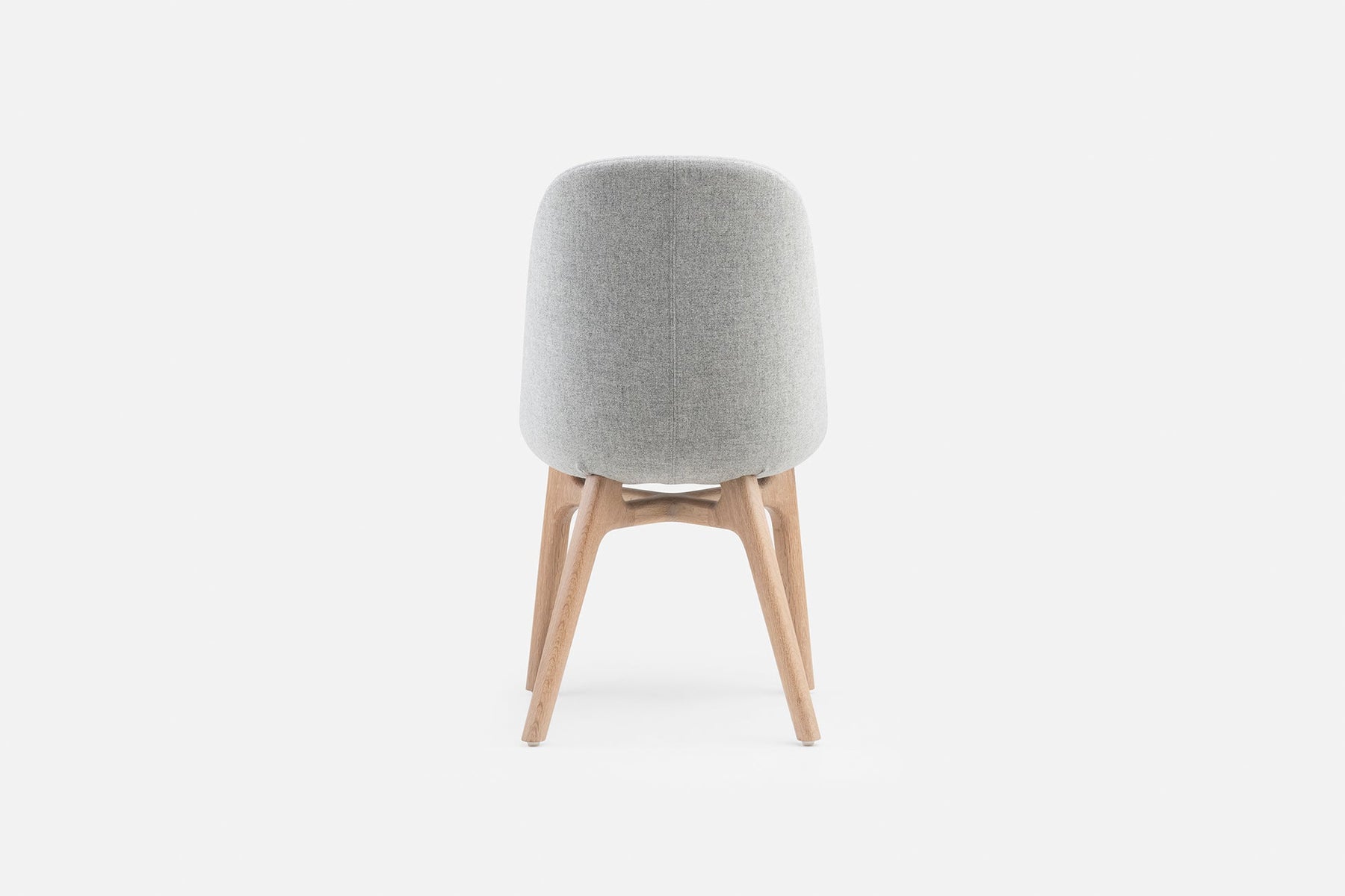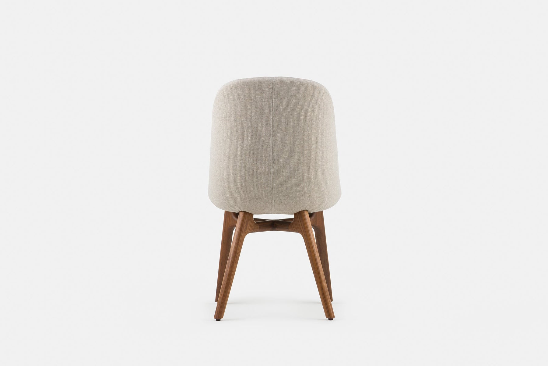 Inspired by the Eames Shell Chair, the Solo Chair is an updated version that transforms the early industrial look of the Eames iconic chair into a sophisticated, comfortable chair that is suitable both in domestic and commercial settings. Solo chair has an upholstered shell that hugs the sitting body to create a microcosmic universe for the person, becoming an object of shelter and refuge, where the person can be “solo” and undisturbed while being hugged in this position.