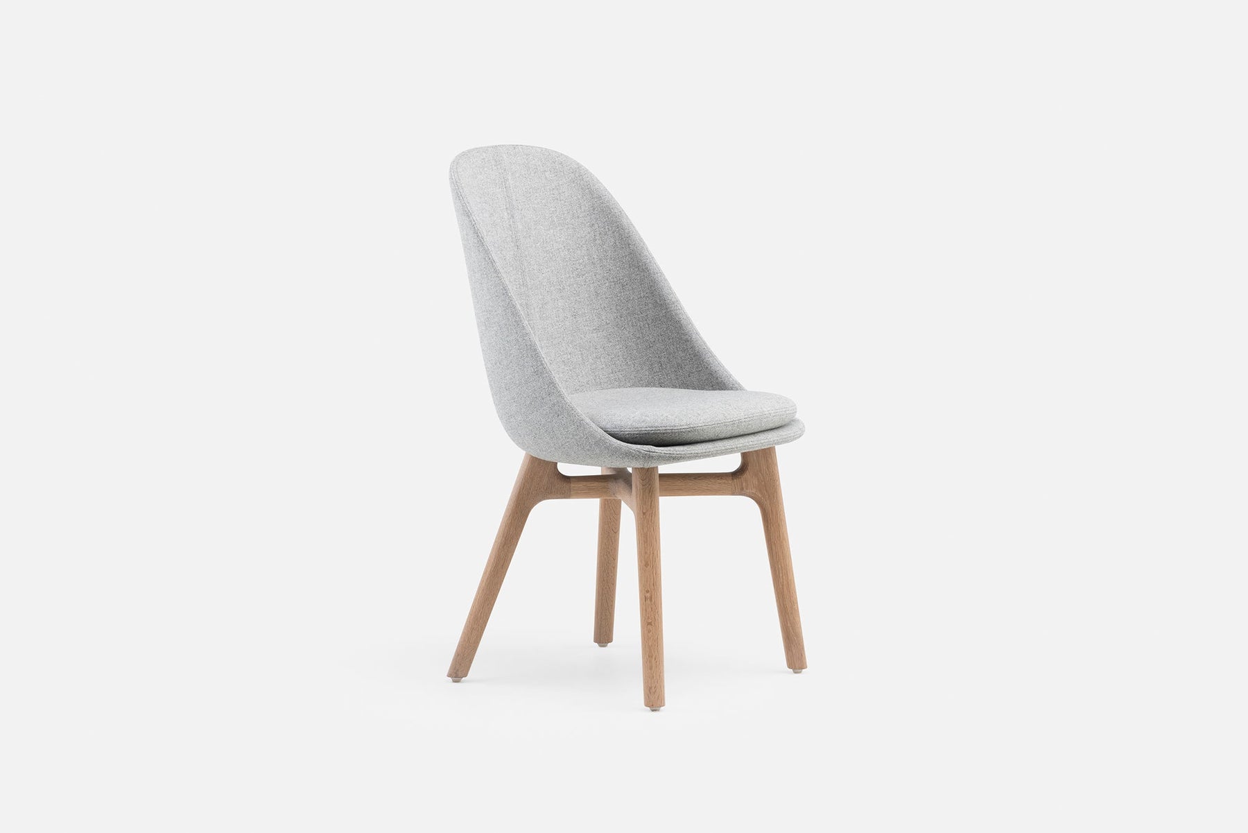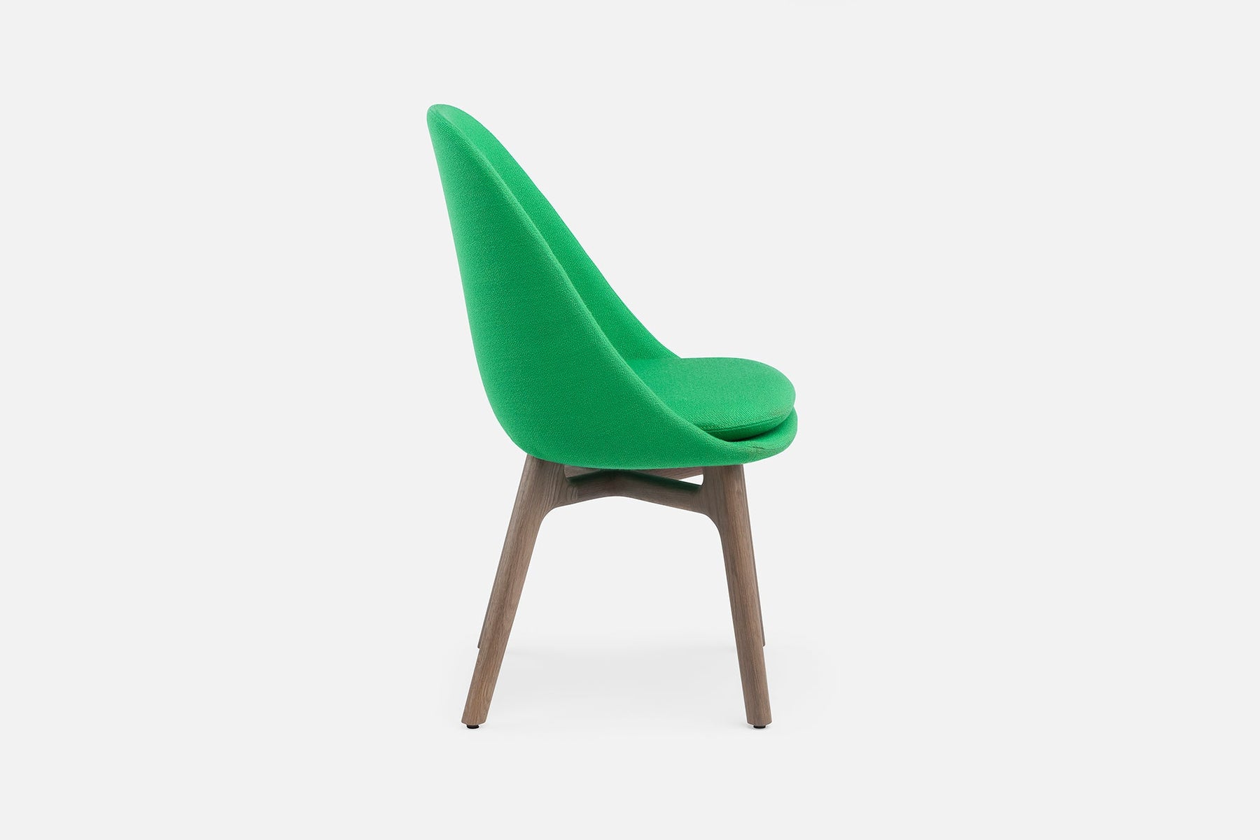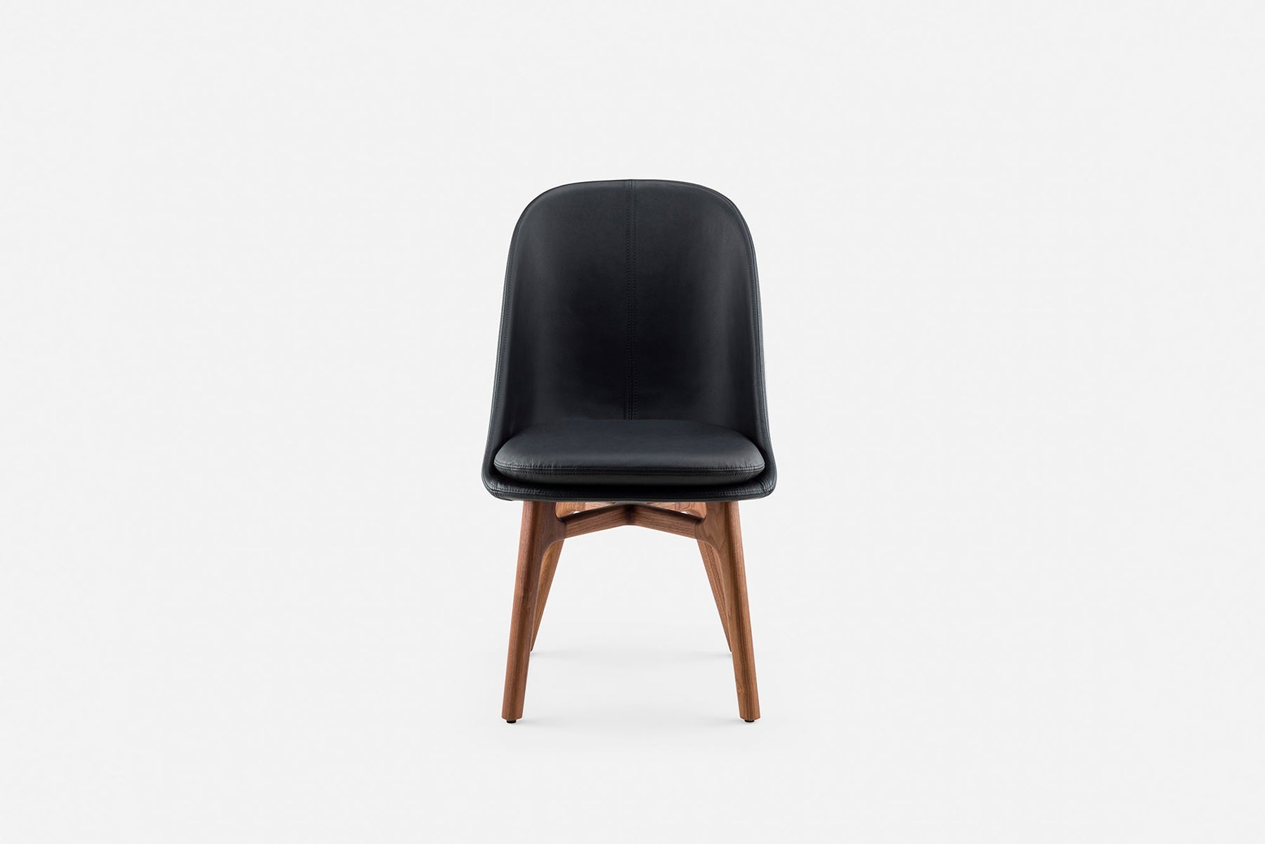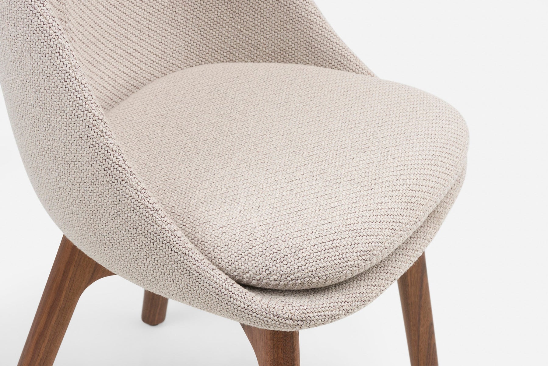 Inspired by the Eames Shell Chair, the Solo Chair is an updated version that transforms the early industrial look of the Eames iconic chair into a sophisticated, comfortable chair that is suitable both in domestic and commercial settings. Solo chair has an upholstered shell that hugs the sitting body to create a microcosmic universe for the person, becoming an object of shelter and refuge, where the person can be “solo” and undisturbed while being hugged in this position.