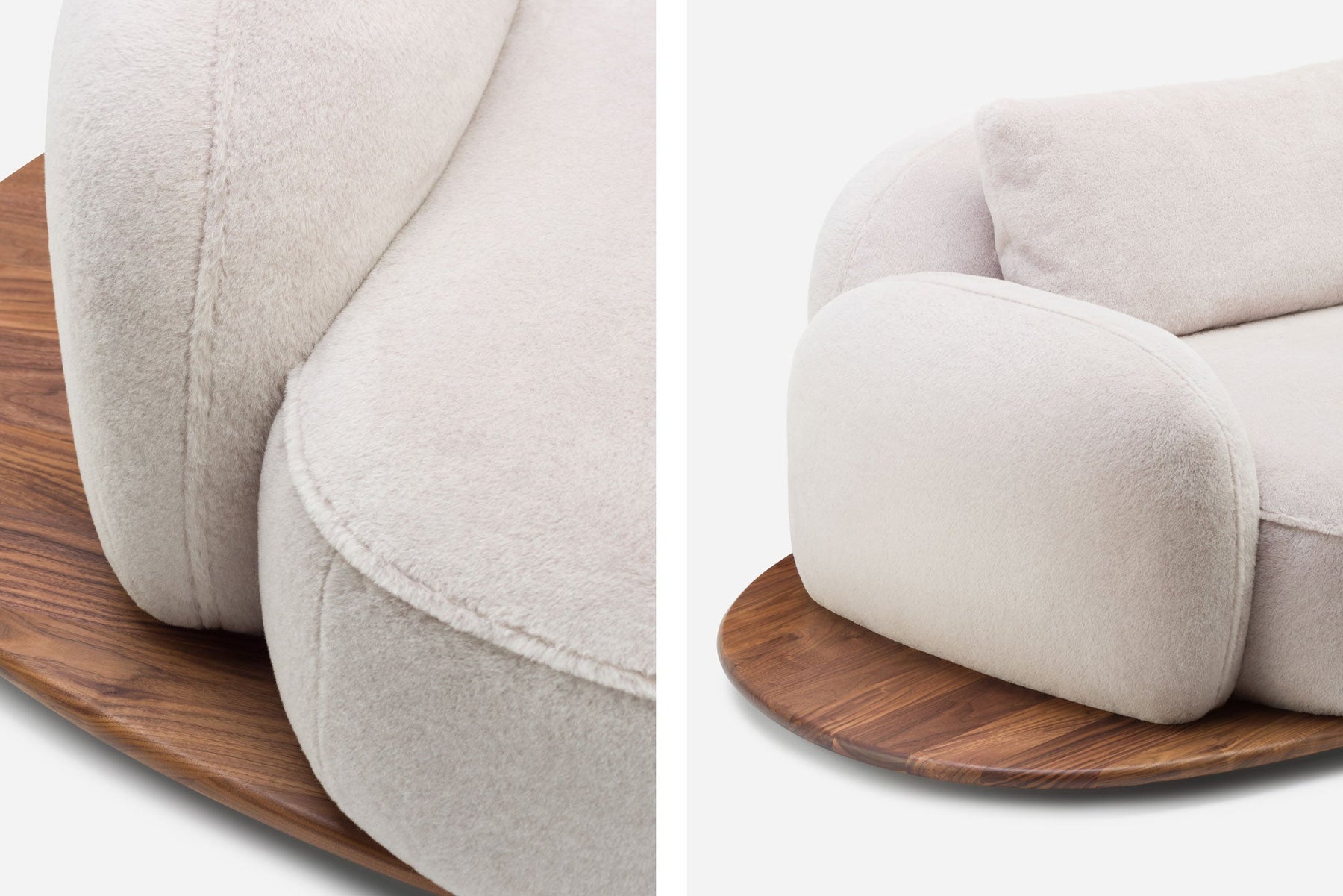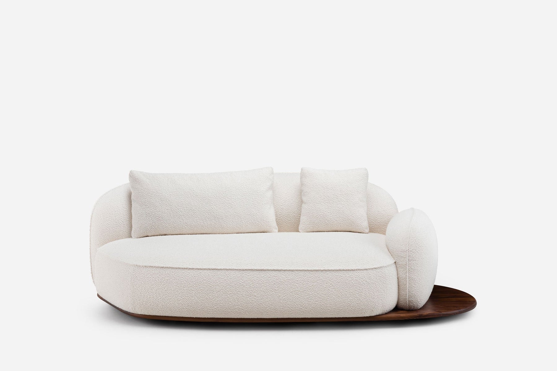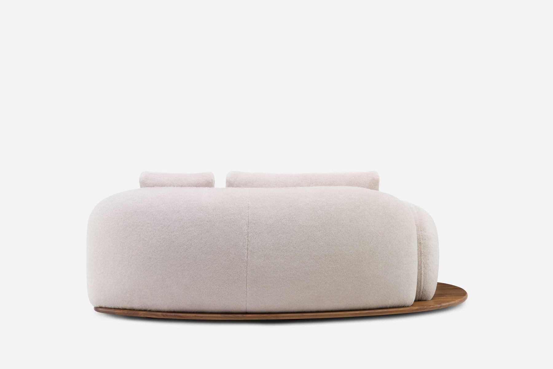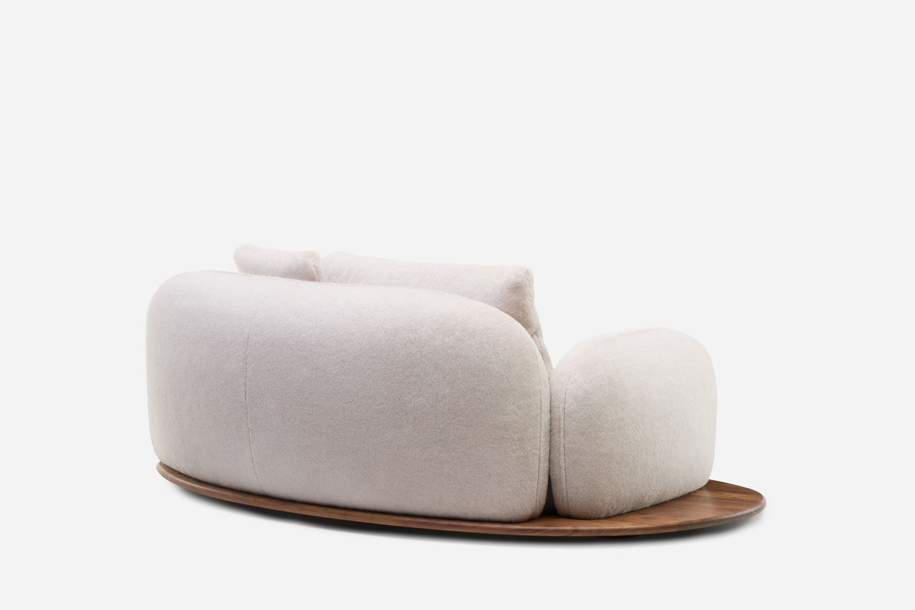 Miguel Sofa is part of the Azores collection by Luca Nichetto. The Azores collection comprises sofas and small tables, conceived as islands, allowing for flexible compositions to suit unique spaces. Each piece has a soft, rounded, sculptural shape made from luxurious upholstery and rich solid wood, highlighting the craft of De La Espada.