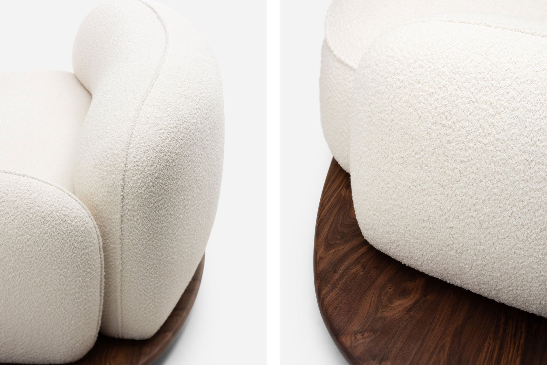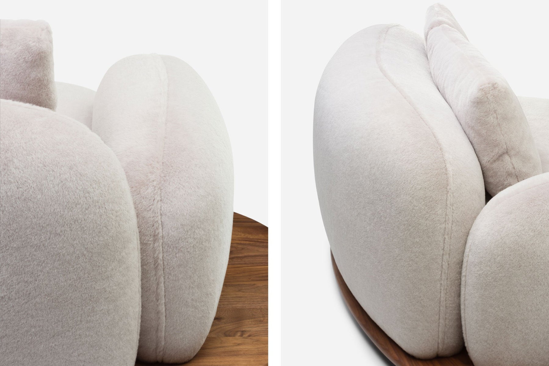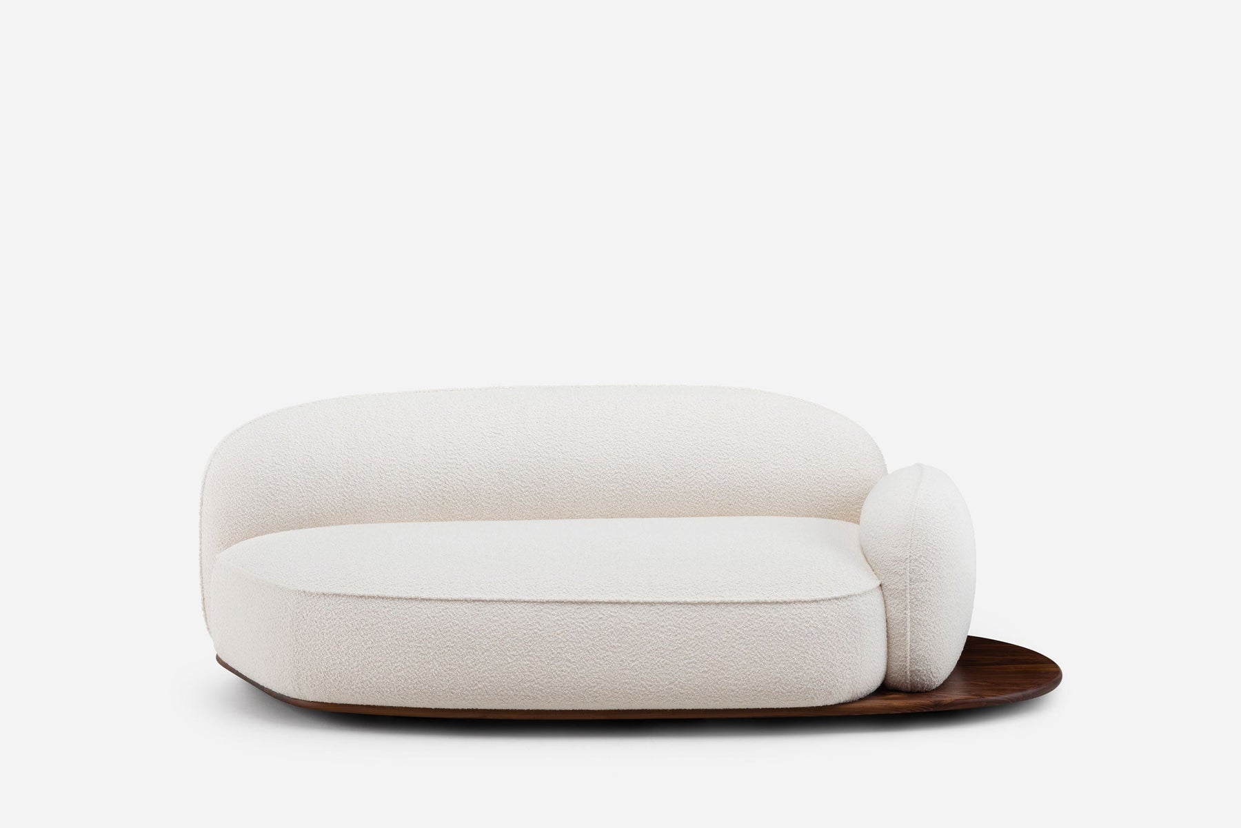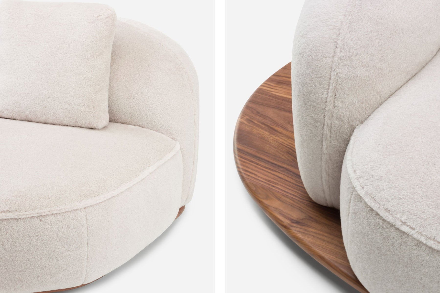 Miguel Sofa is part of the Azores collection by Luca Nichetto. The Azores collection comprises sofas and small tables, conceived as islands, allowing for flexible compositions to suit unique spaces. Each piece has a soft, rounded, sculptural shape made from luxurious upholstery and rich solid wood, highlighting the craft of De La Espada.