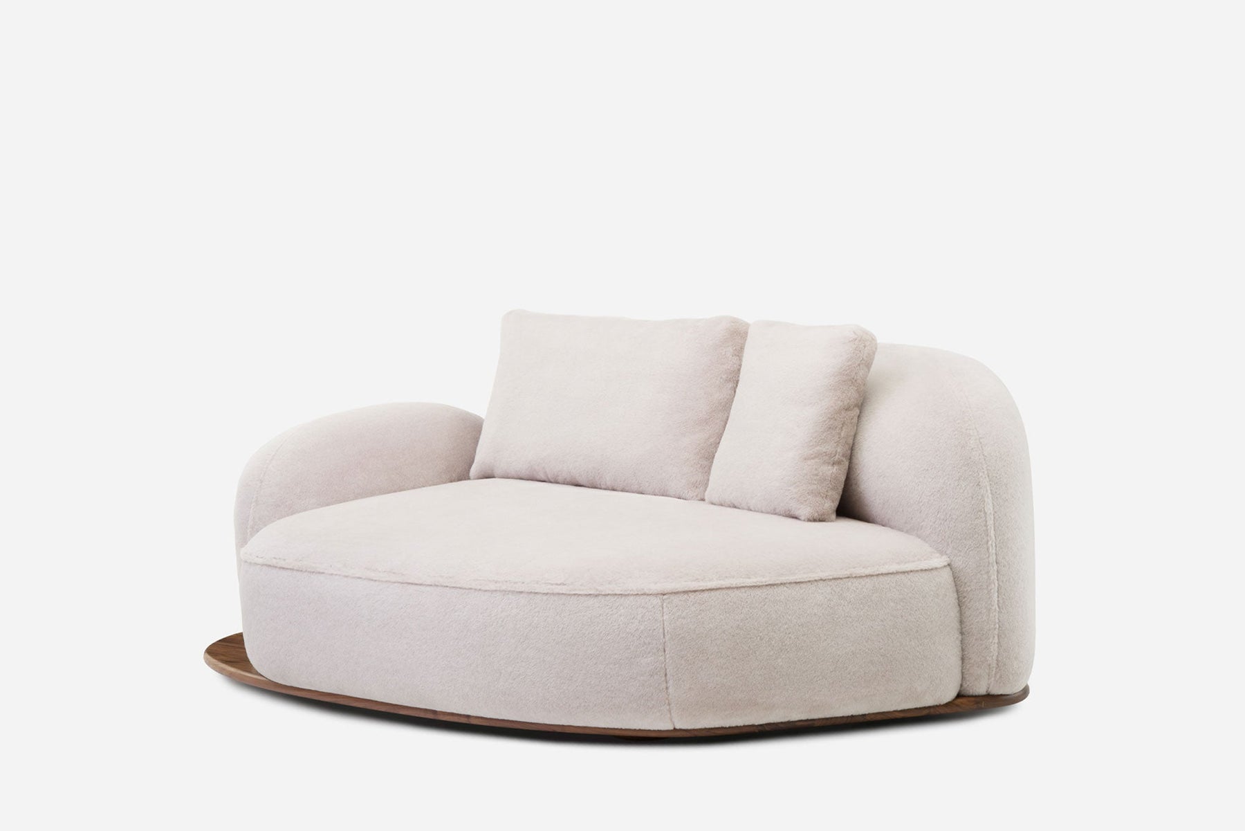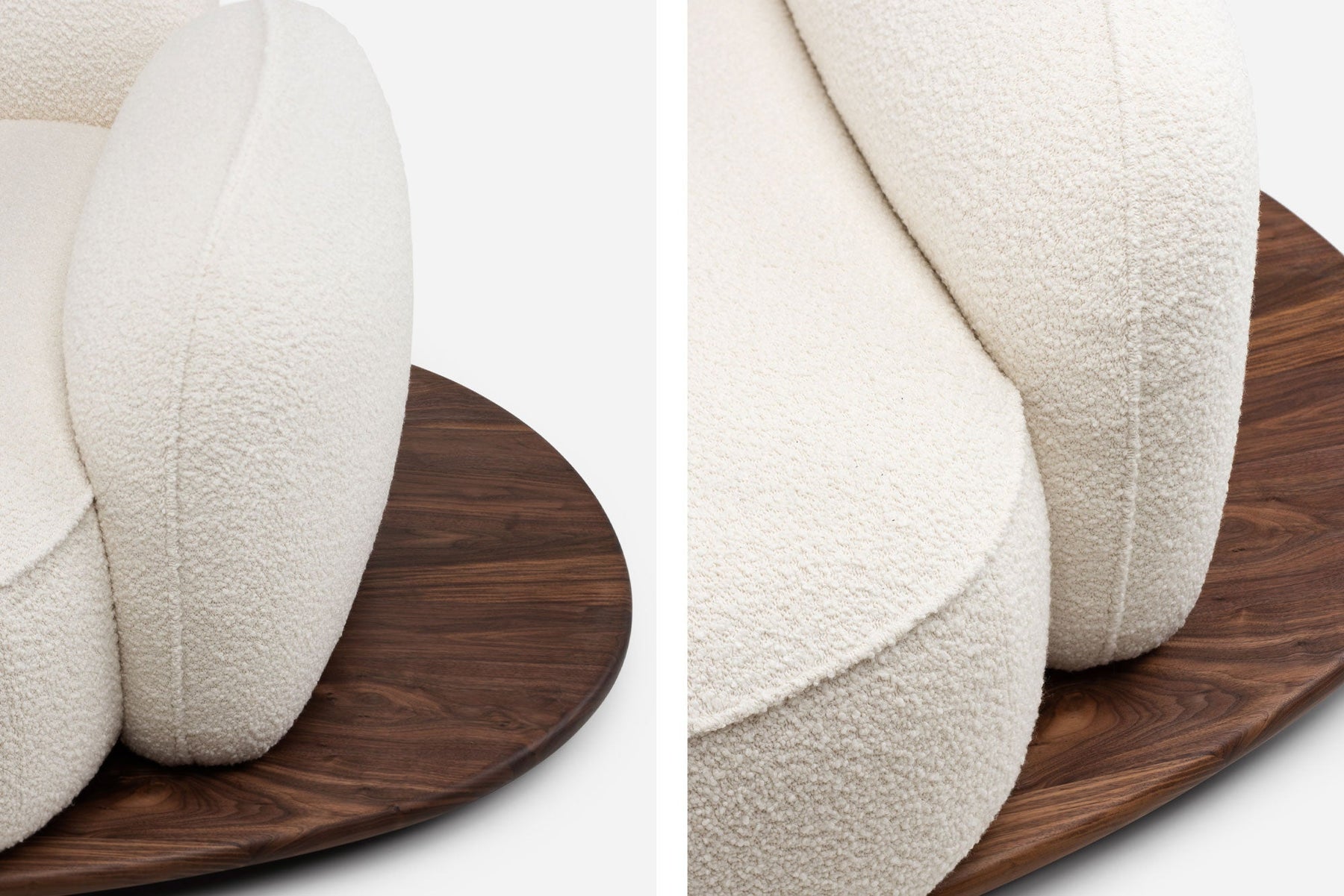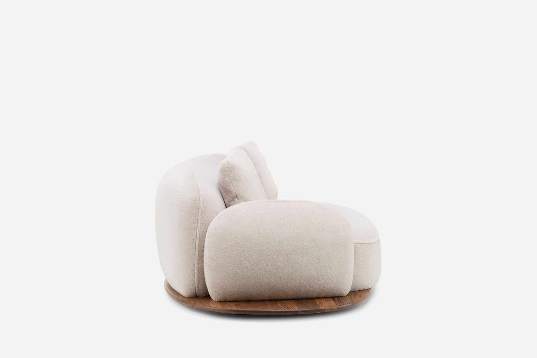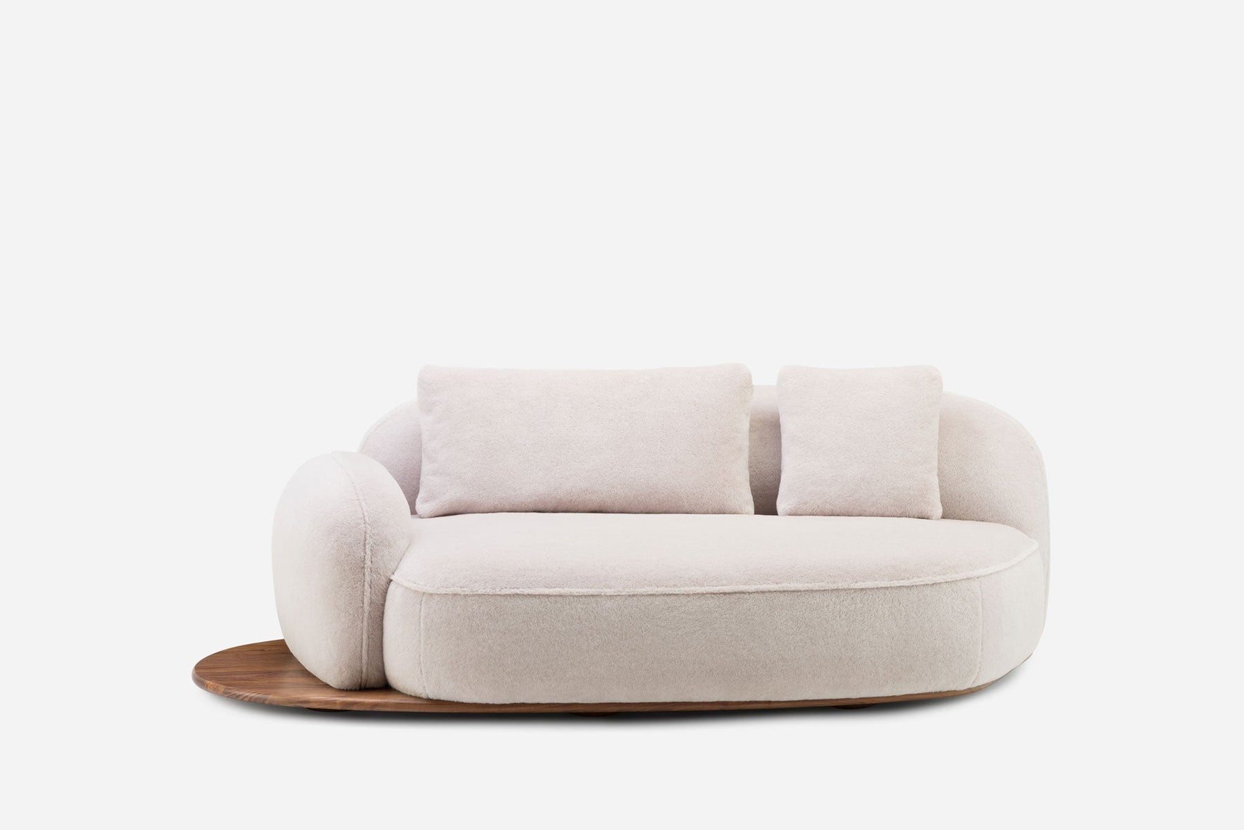 Miguel Sofa is part of the Azores collection by Luca Nichetto. The Azores collection comprises sofas and small tables, conceived as islands, allowing for flexible compositions to suit unique spaces. Each piece has a soft, rounded, sculptural shape made from luxurious upholstery and rich solid wood, highlighting the craft of De La Espada.