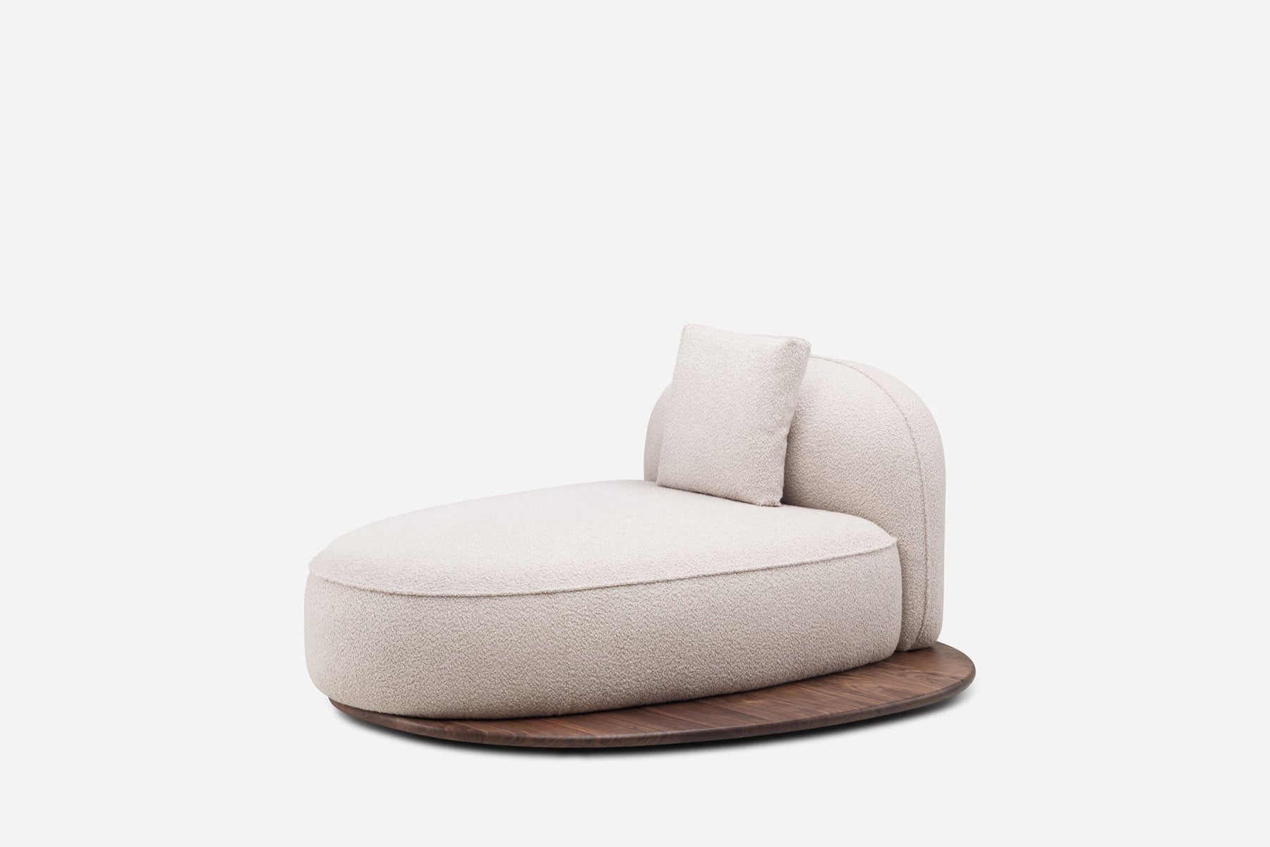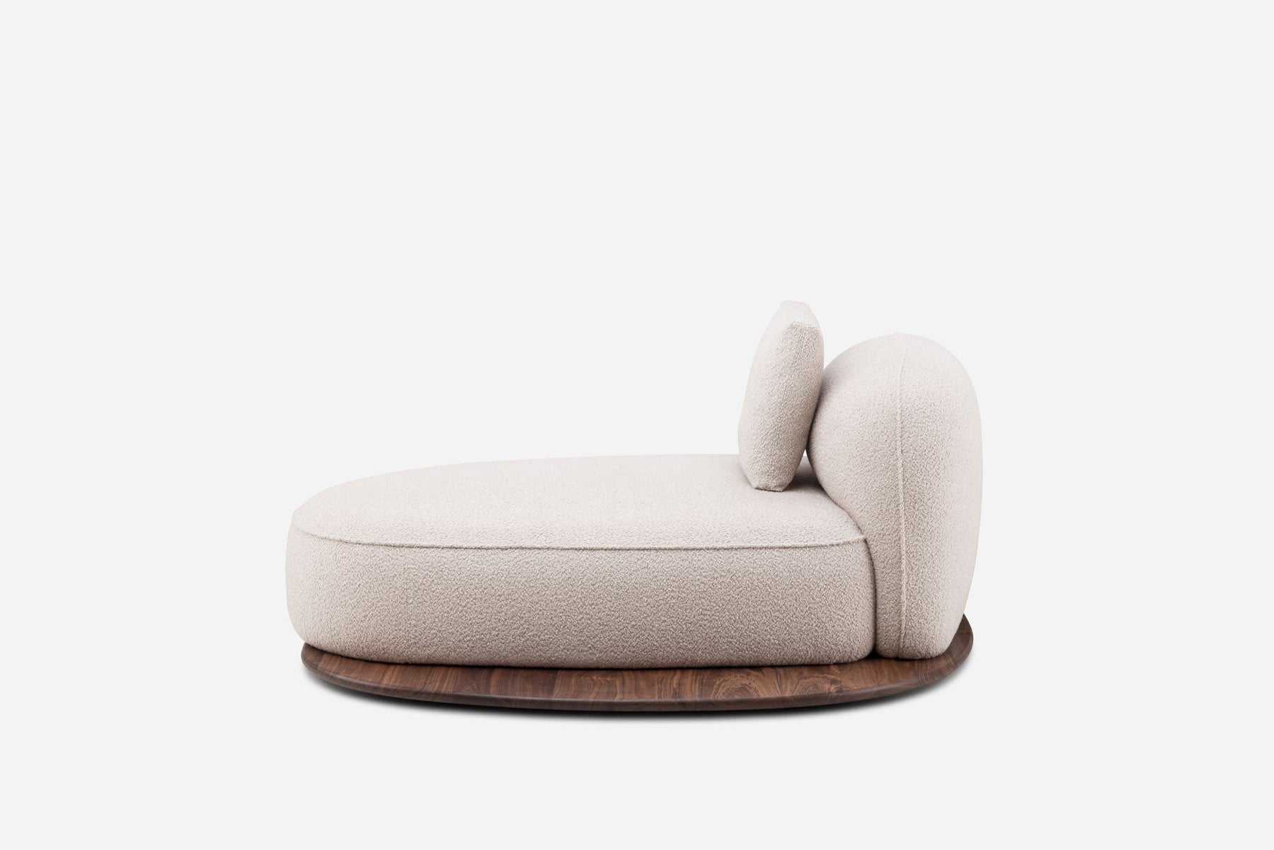 Pico Daybed is part of the Azores collection by Luca Nichetto. The Azores collection comprises sofas and small tables, conceived as islands, allowing for flexible compositions to suit unique spaces. Each piece has a soft, rounded, sculptural shape made from luxurious upholstery and rich solid wood, highlighting the craft of De La Espada.