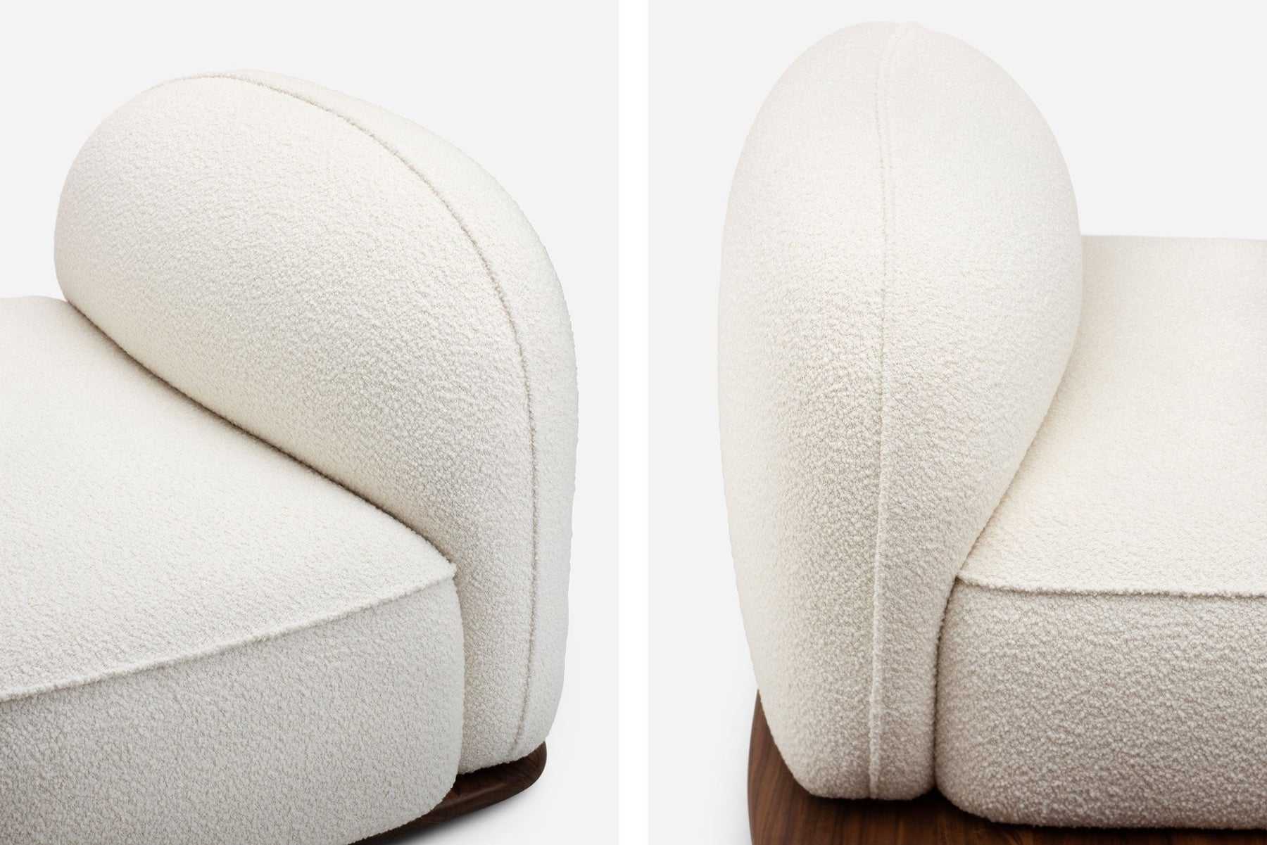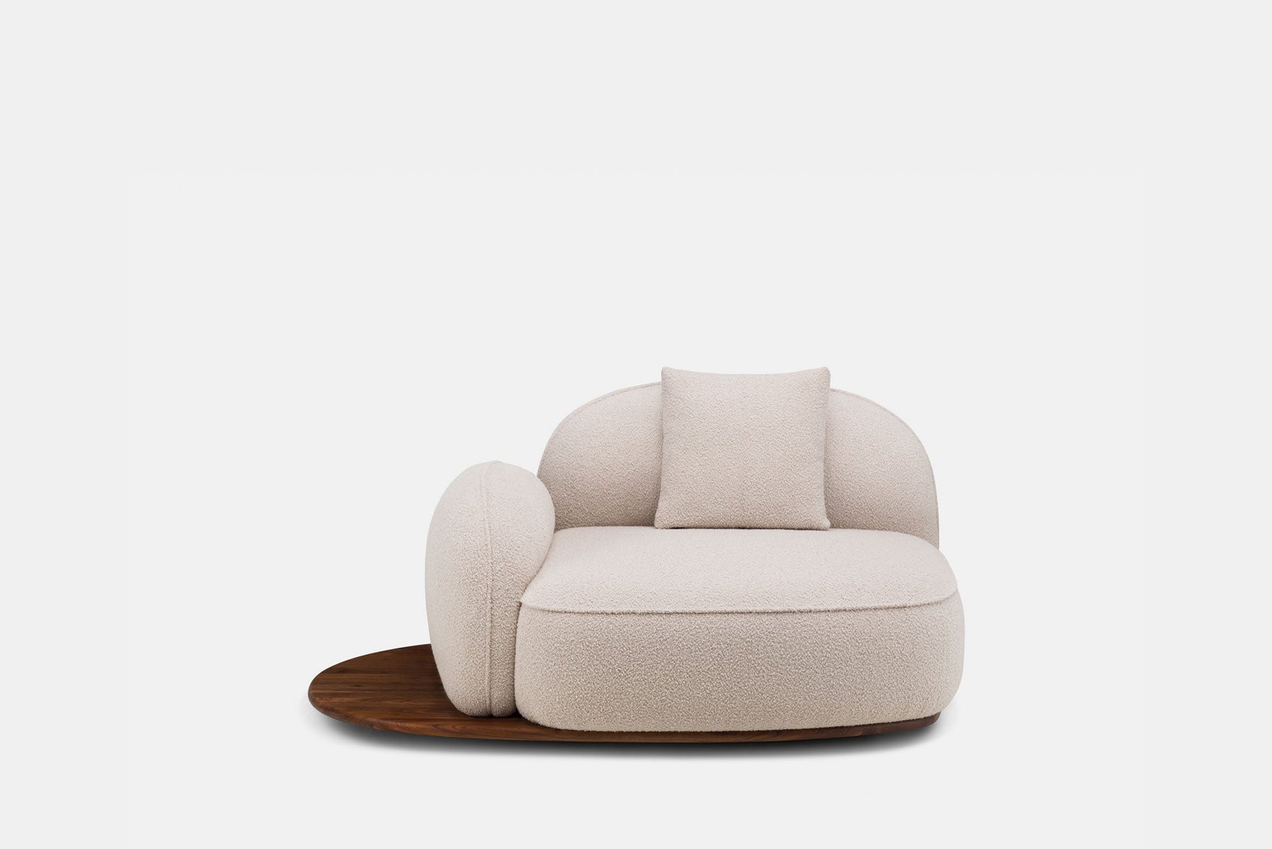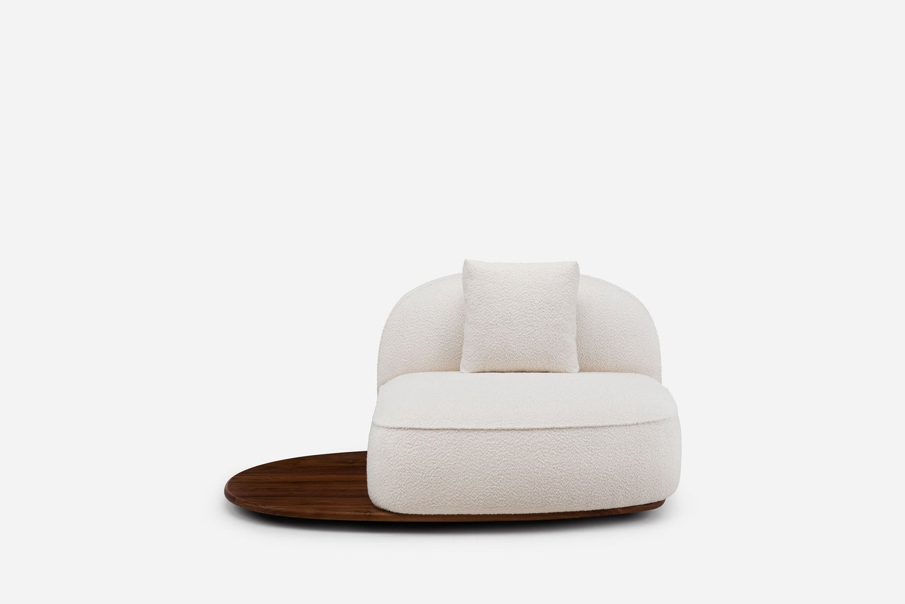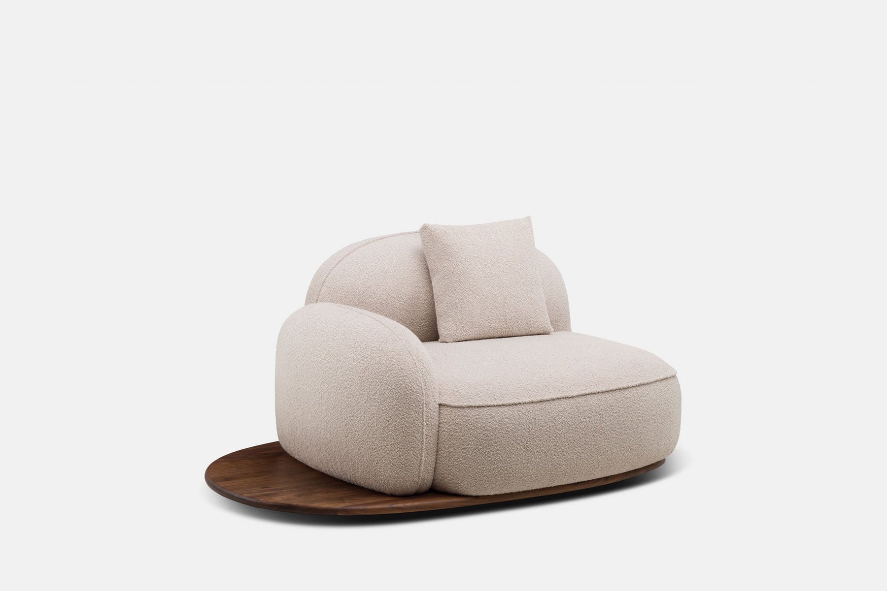 Faial Lounge Chair is part of the Azores collection by Luca Nichetto. The Azores collection comprises sofas and small tables, conceived as islands, allowing for flexible compositions to suit unique spaces. Each piece has a soft, rounded, sculptural shape made from luxurious upholstery and rich solid wood, highlighting the craft of De La Espada.