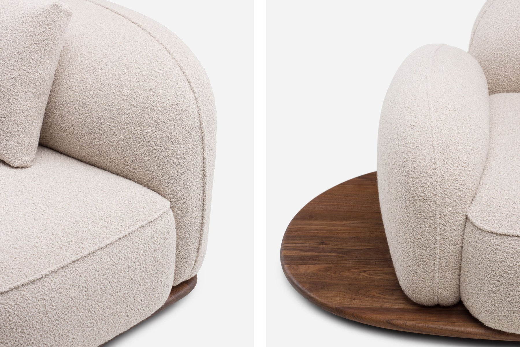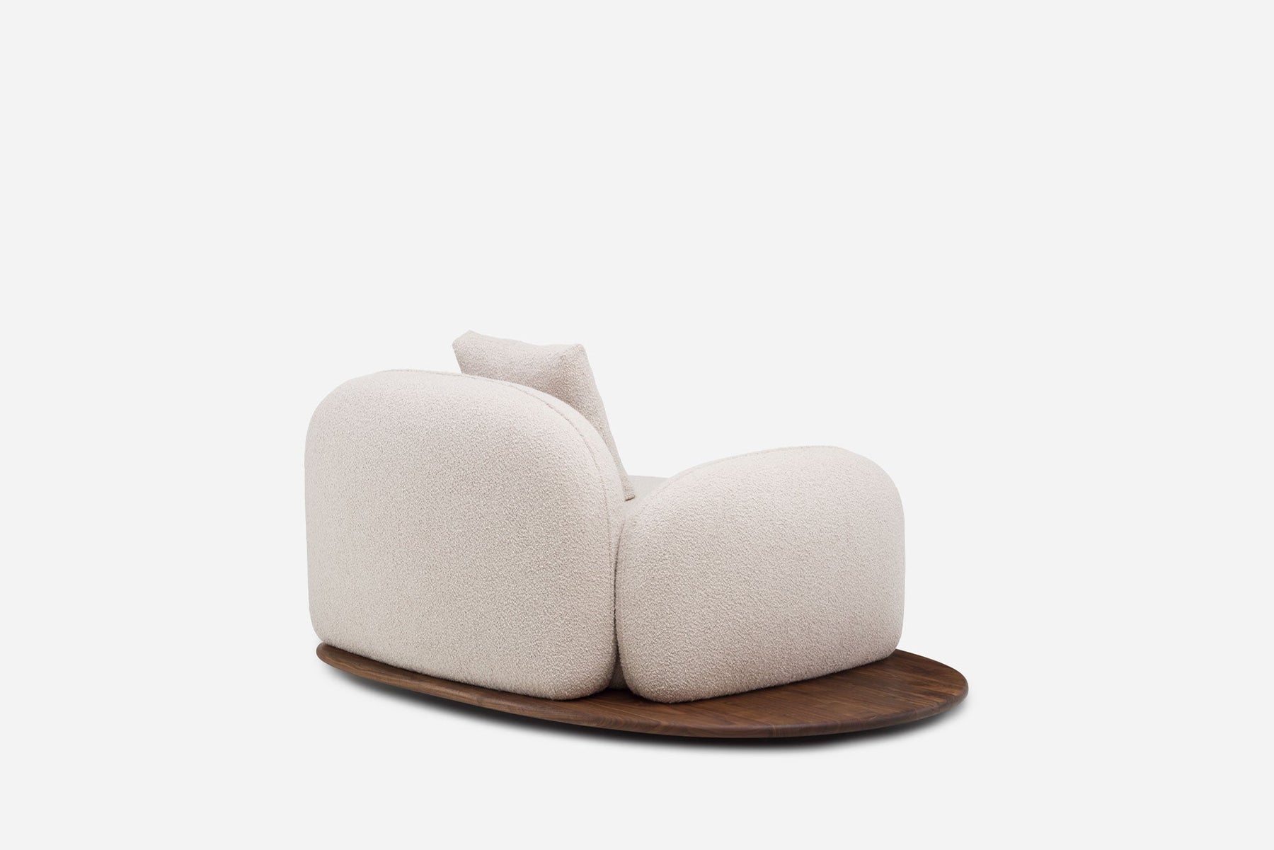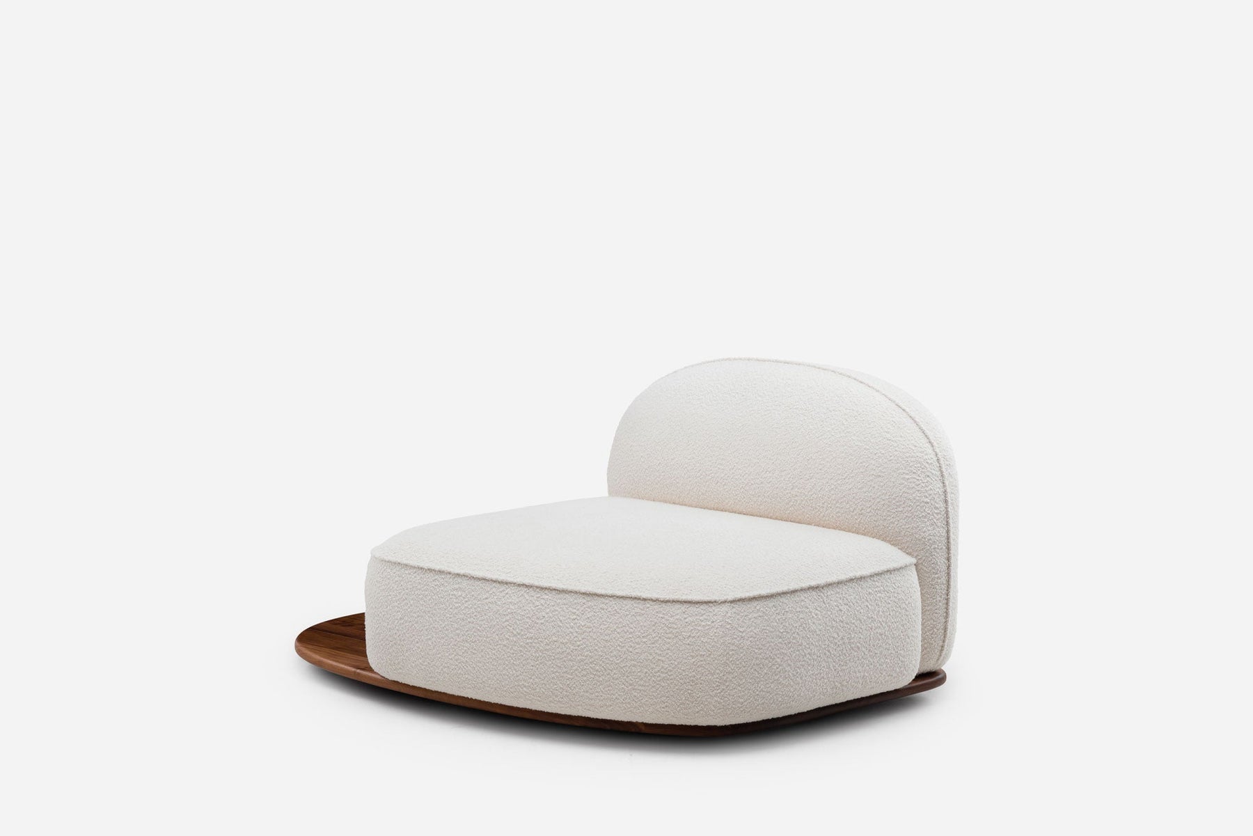 Faial Lounge Chair is part of the Azores collection by Luca Nichetto. The Azores collection comprises sofas and small tables, conceived as islands, allowing for flexible compositions to suit unique spaces. Each piece has a soft, rounded, sculptural shape made from luxurious upholstery and rich solid wood, highlighting the craft of De La Espada.