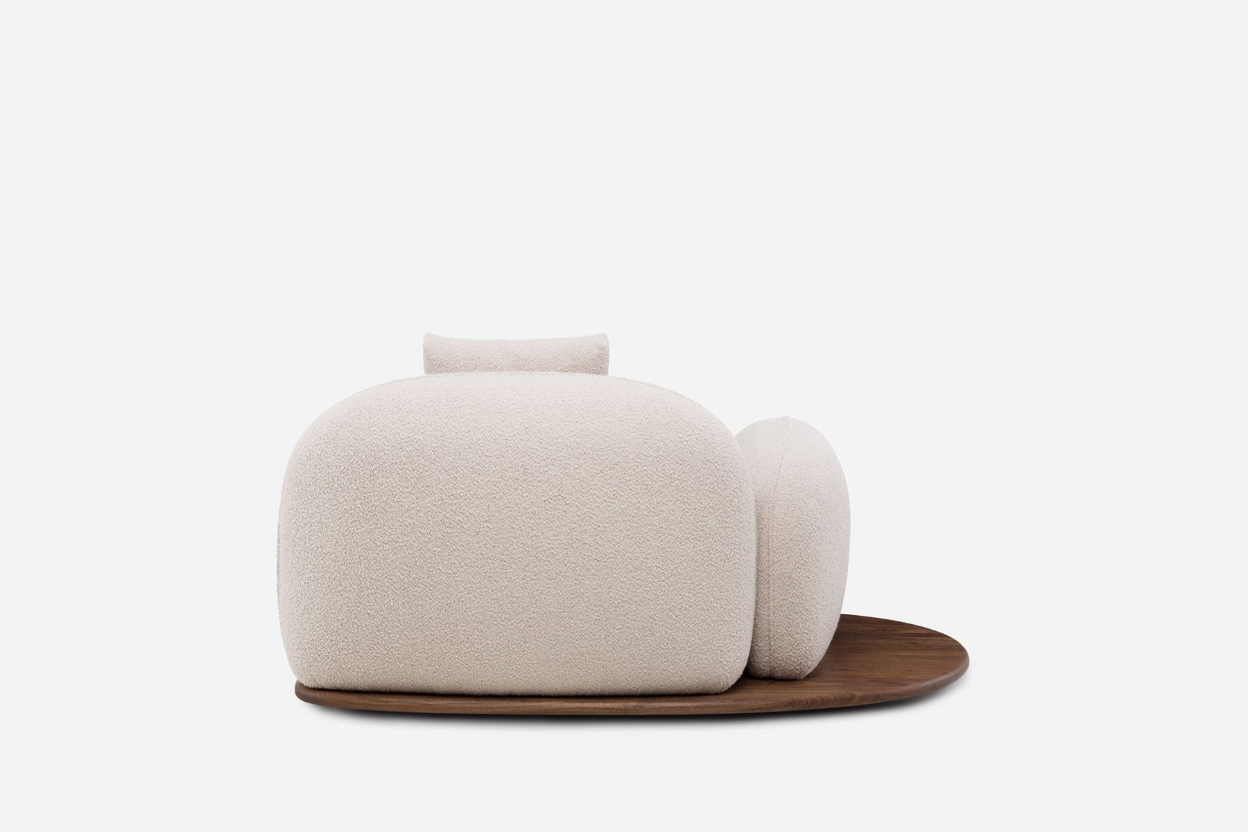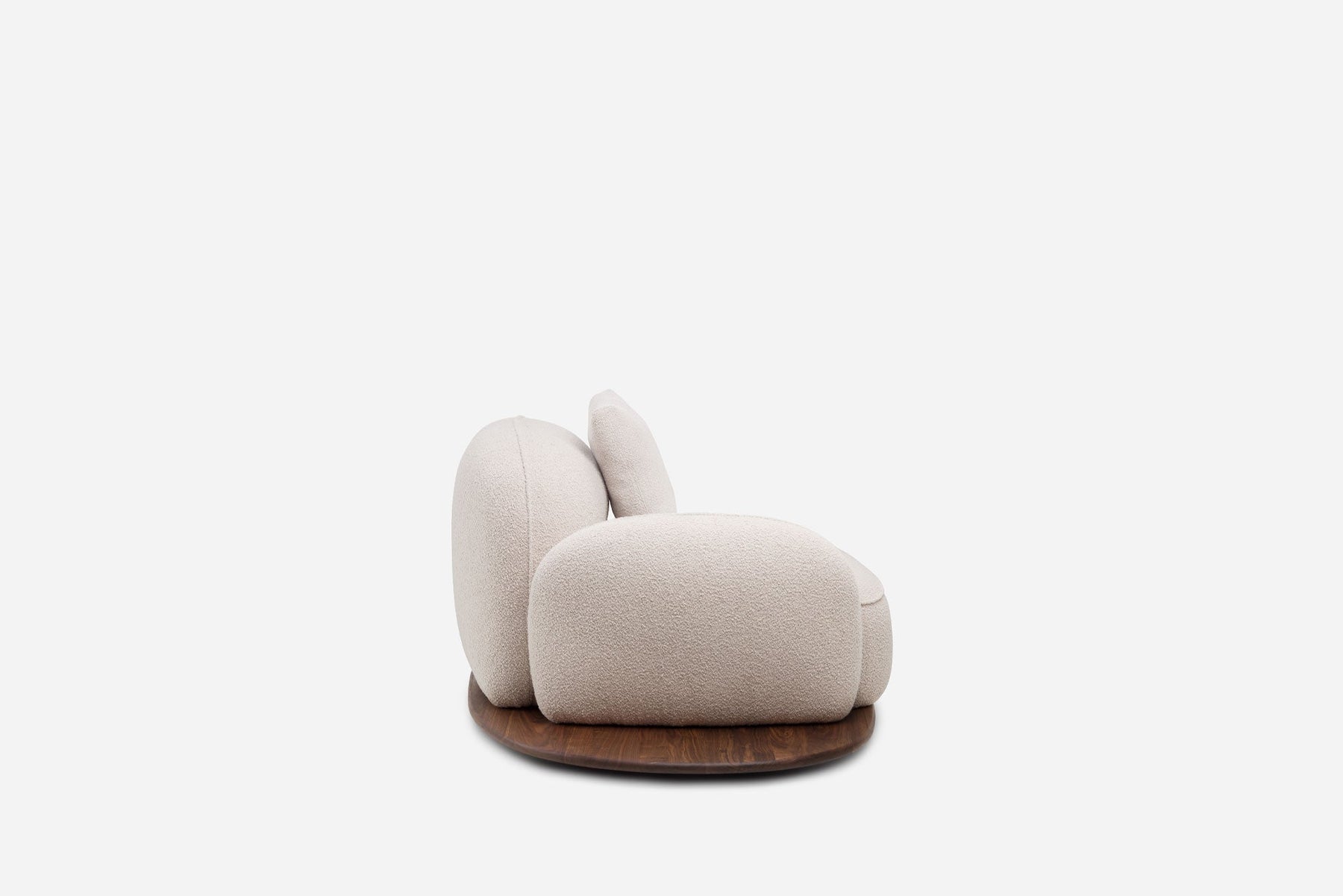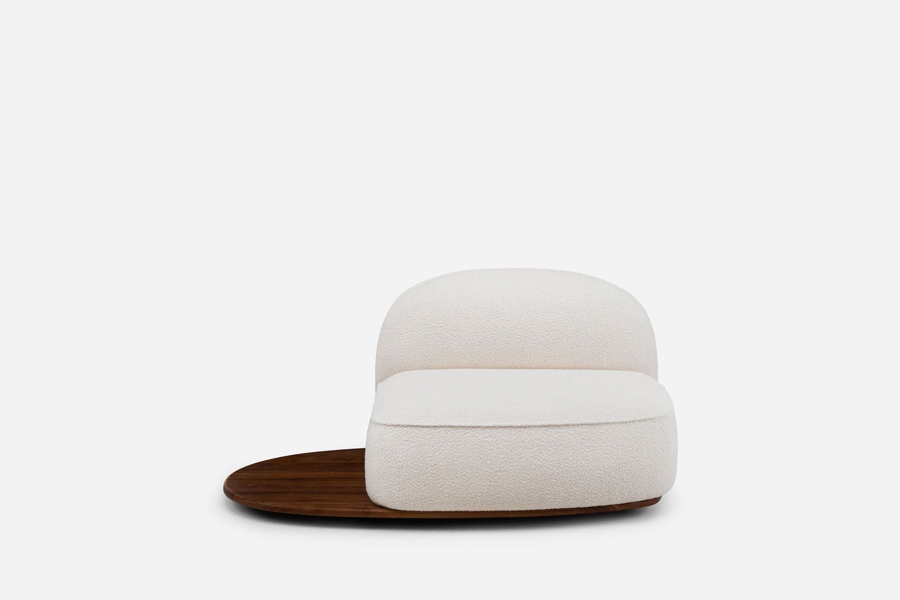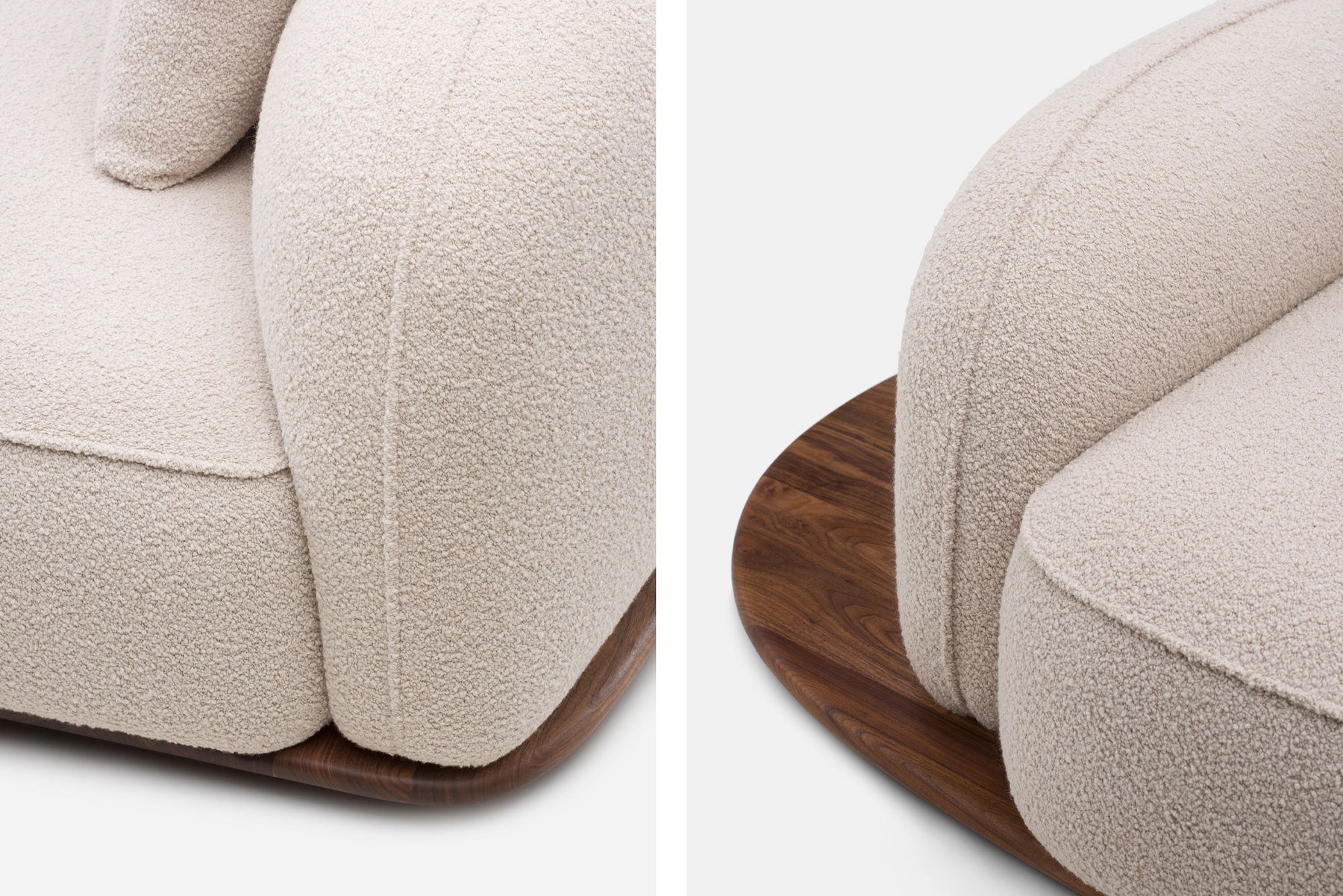 Faial Lounge Chair is part of the Azores collection by Luca Nichetto. The Azores collection comprises sofas and small tables, conceived as islands, allowing for flexible compositions to suit unique spaces. Each piece has a soft, rounded, sculptural shape made from luxurious upholstery and rich solid wood, highlighting the craft of De La Espada.
