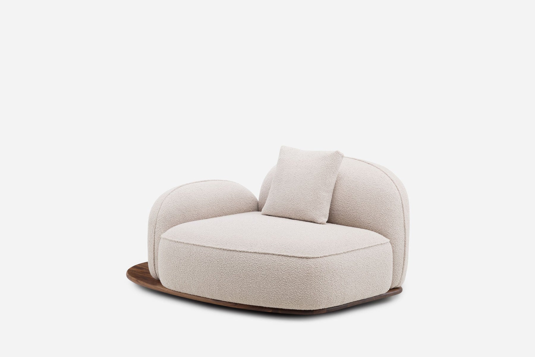 Faial is available armless, with the timber base on the right or left hand side; or with a single arm plus timber base on the right or left hand side. Comes with one square scatter cushion.