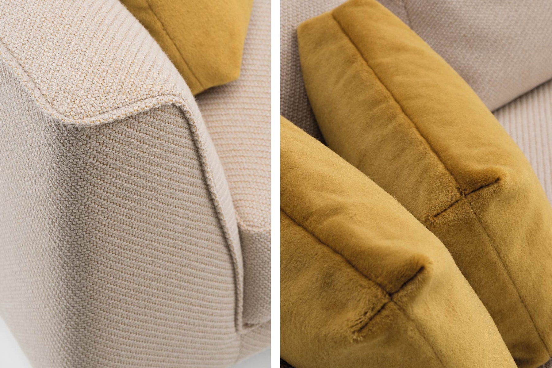 Each sofa includes four back cushions, two measuring W65 × H45 cm (W25 2/3 × H17 3/4 ”) and two measuring W50 × H50 cm (W19 3/4 × H19 3/4 ”).