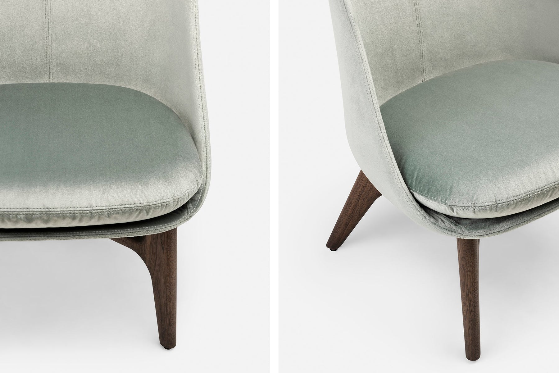 Available in black walnut, white oak, or ash in a range of finishes, and a range of fabric and leather options. NOTE: This product is not available in Harald fabric. See menus below for further material information.