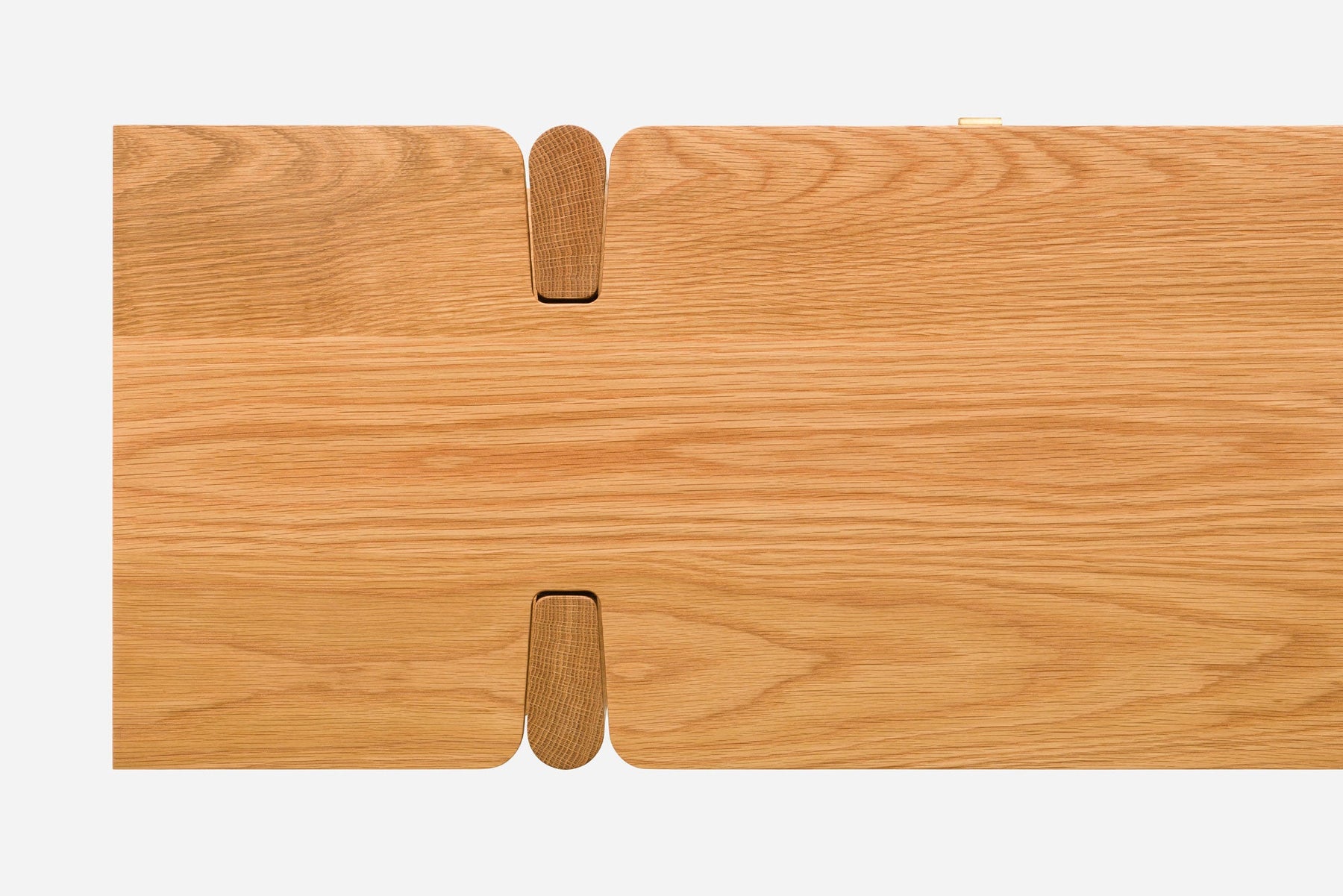 Timber is sustainable solid wood from North America or Europe, offering long-term repairability of the surface. Natural colour and grain variations in every plank make each piece an individual. Traditional wood joinery bonded with wood glue ensures structural integrity. All finishes are non-toxic and applied by hand, sprayed or rubbed.
