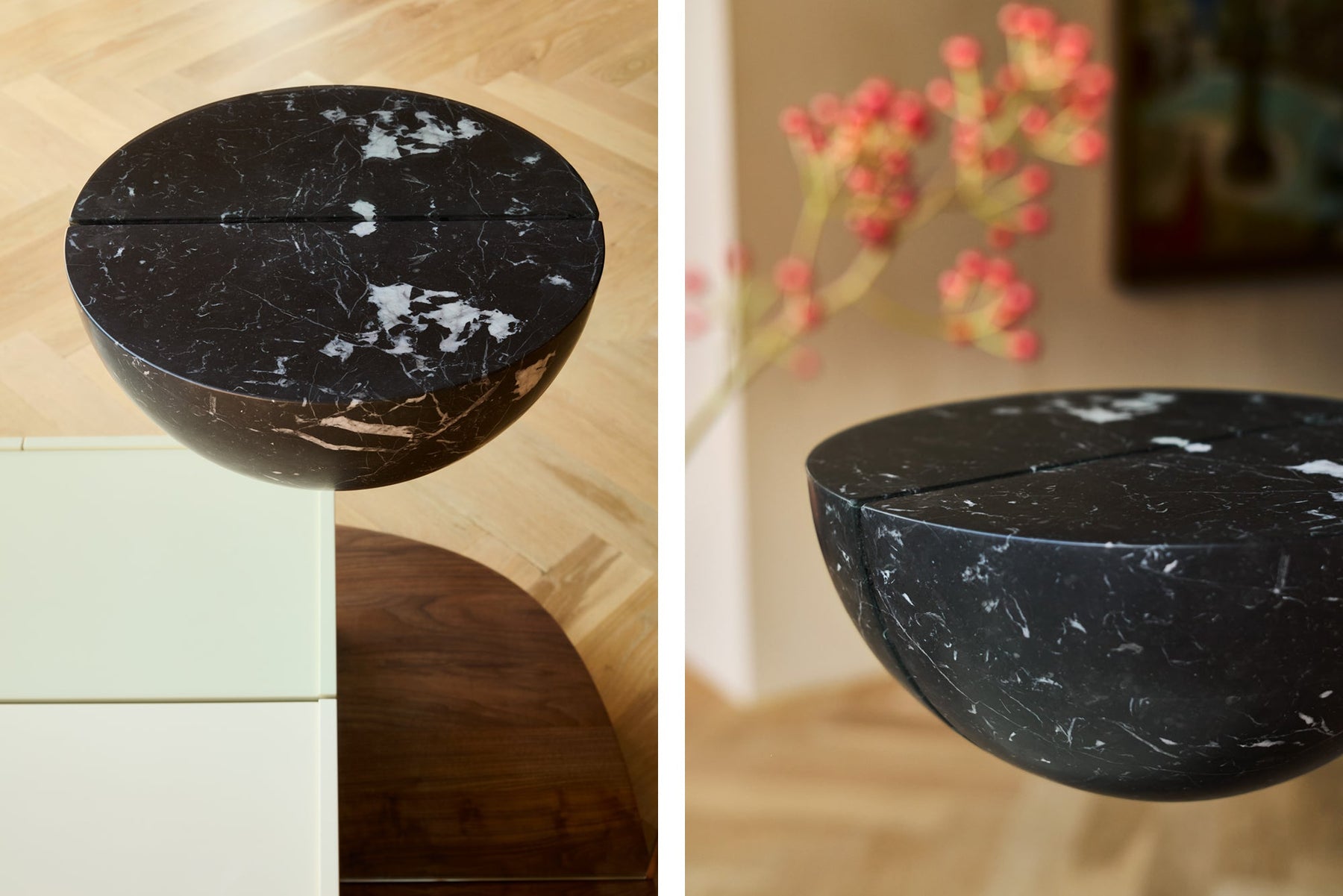DANISH OILED WALNUT & WHITE GLOSS LACQUER & BLACK MARQUINA MARBLE
