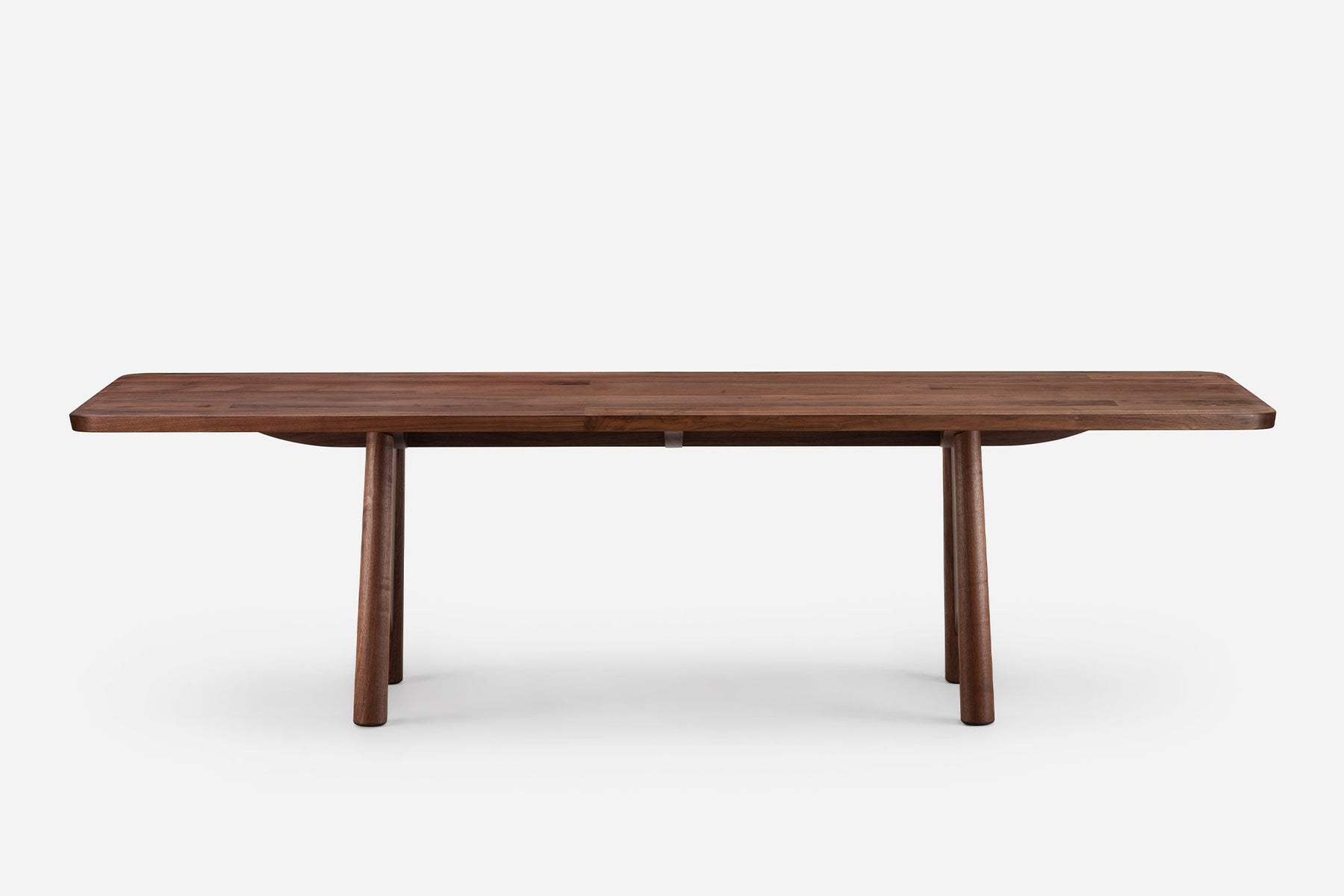 Twenty-Five is a solid wood dining table inspired by the structure of bridges and their archesThe design reflects mid-century Scandinavian, French and Portuguese influences in an understated form.
