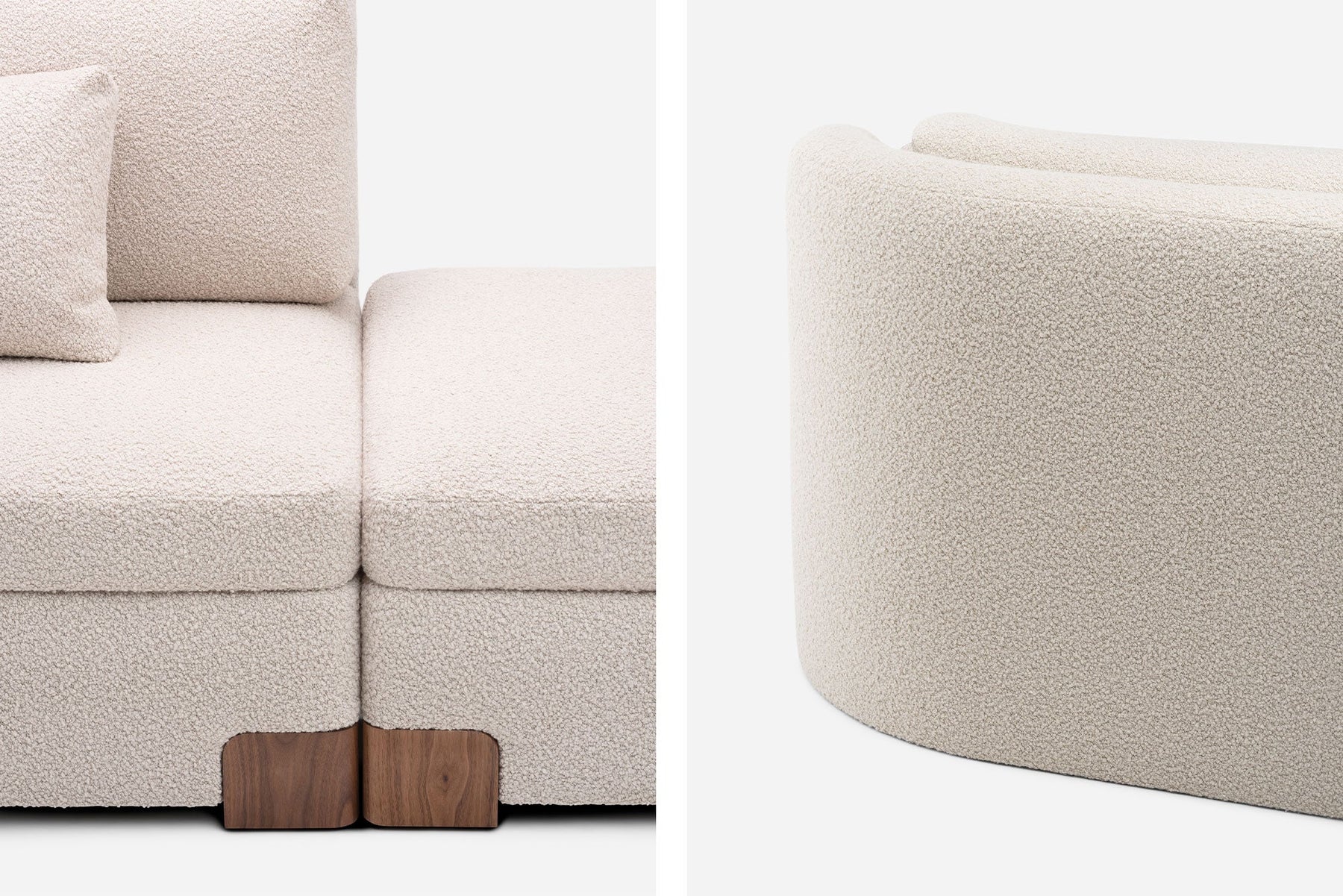 Albireo Sofa by Anthony Guerrée is a flexible seating system with gentle curves and a tall backrest, offering refined style and deep comfort. With just six key modules, Albireo Sofa can achieve numerous configurations with a sense of dynamism. The upholstered form is punctuated by timber feet and optional timber side tables.