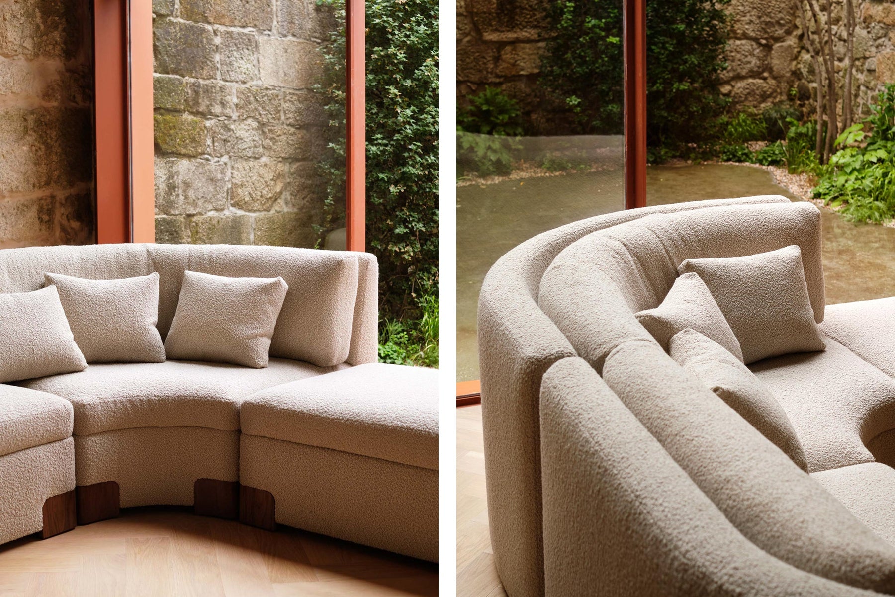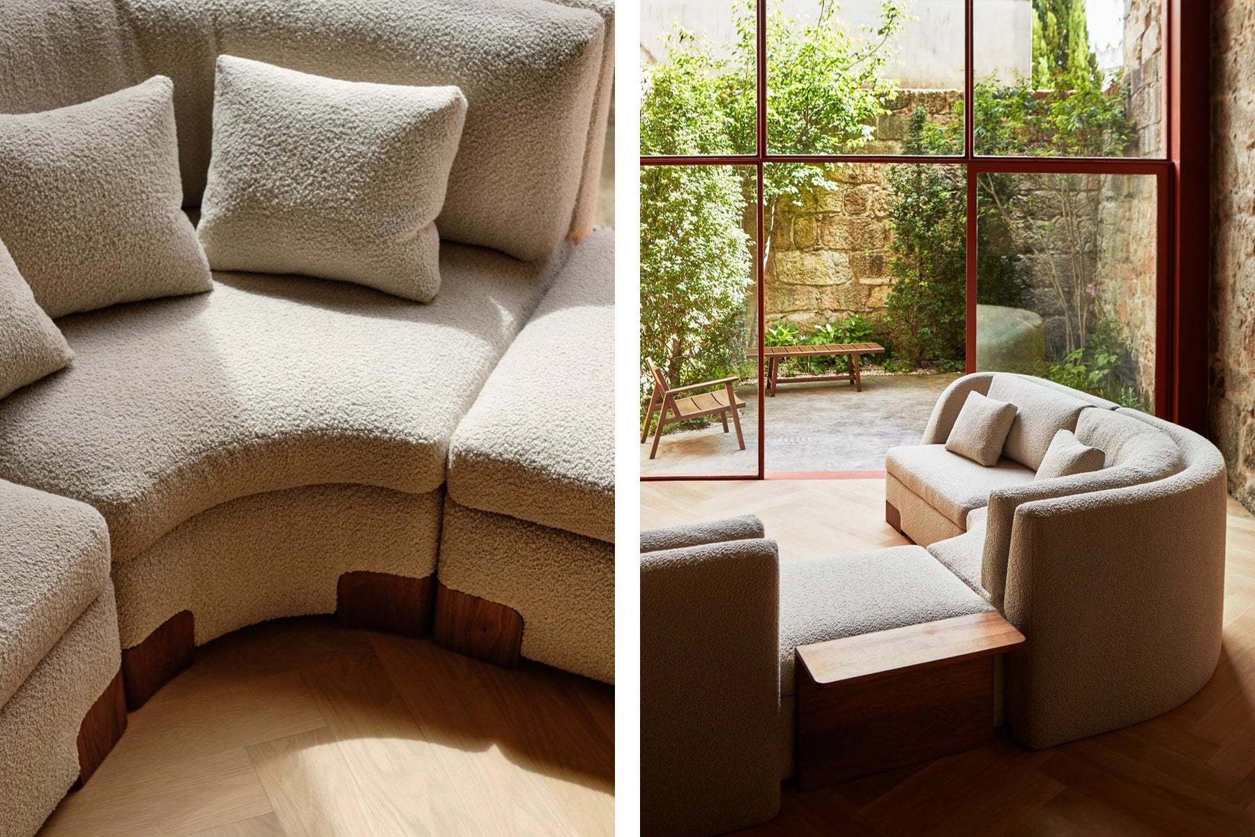 Albireo Sofa by Anthony Guerrée is a flexible seating system with gentle curves and a tall backrest, offering refined style and deep comfort. With just six key modules, Albireo Sofa can achieve numerous configurations with a sense of dynamism. The upholstered form is punctuated by timber feet and optional timber side tables.