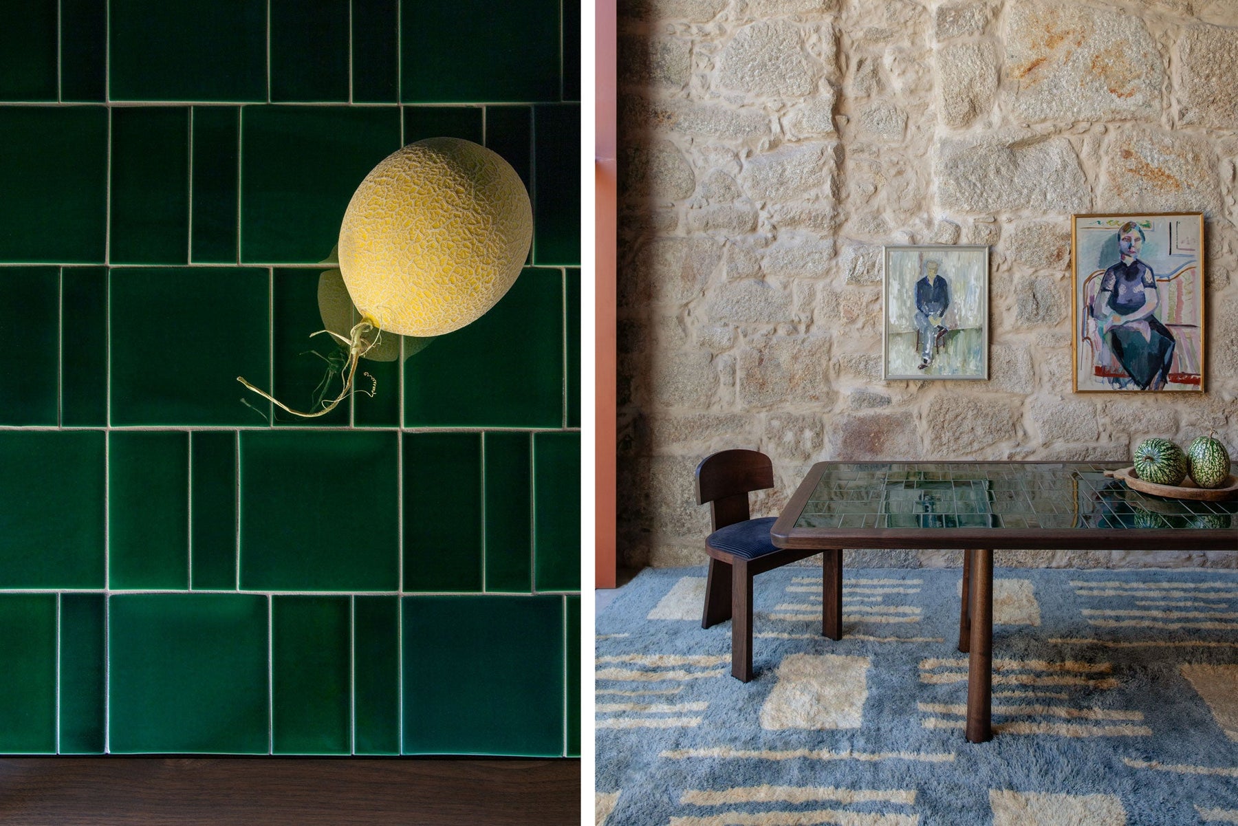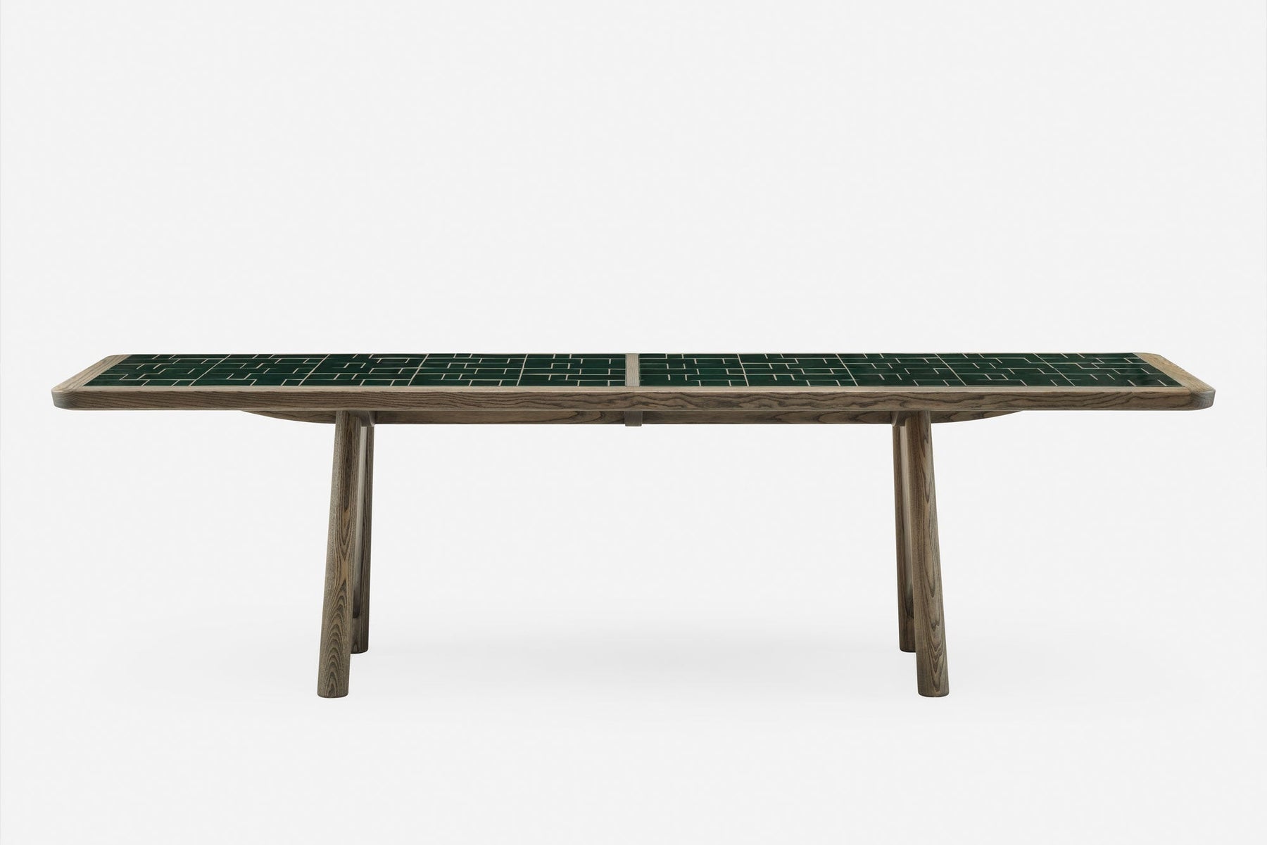 Twenty-Five is a solid wood dining table inspired by the structure of bridges and their arches, with a tabletop featuring handmade Portuguese tiles from Sintra. The design reflects mid-century Scandinavian, French and Portuguese influences in an understated form with a material combination that is both beautiful and high performing.