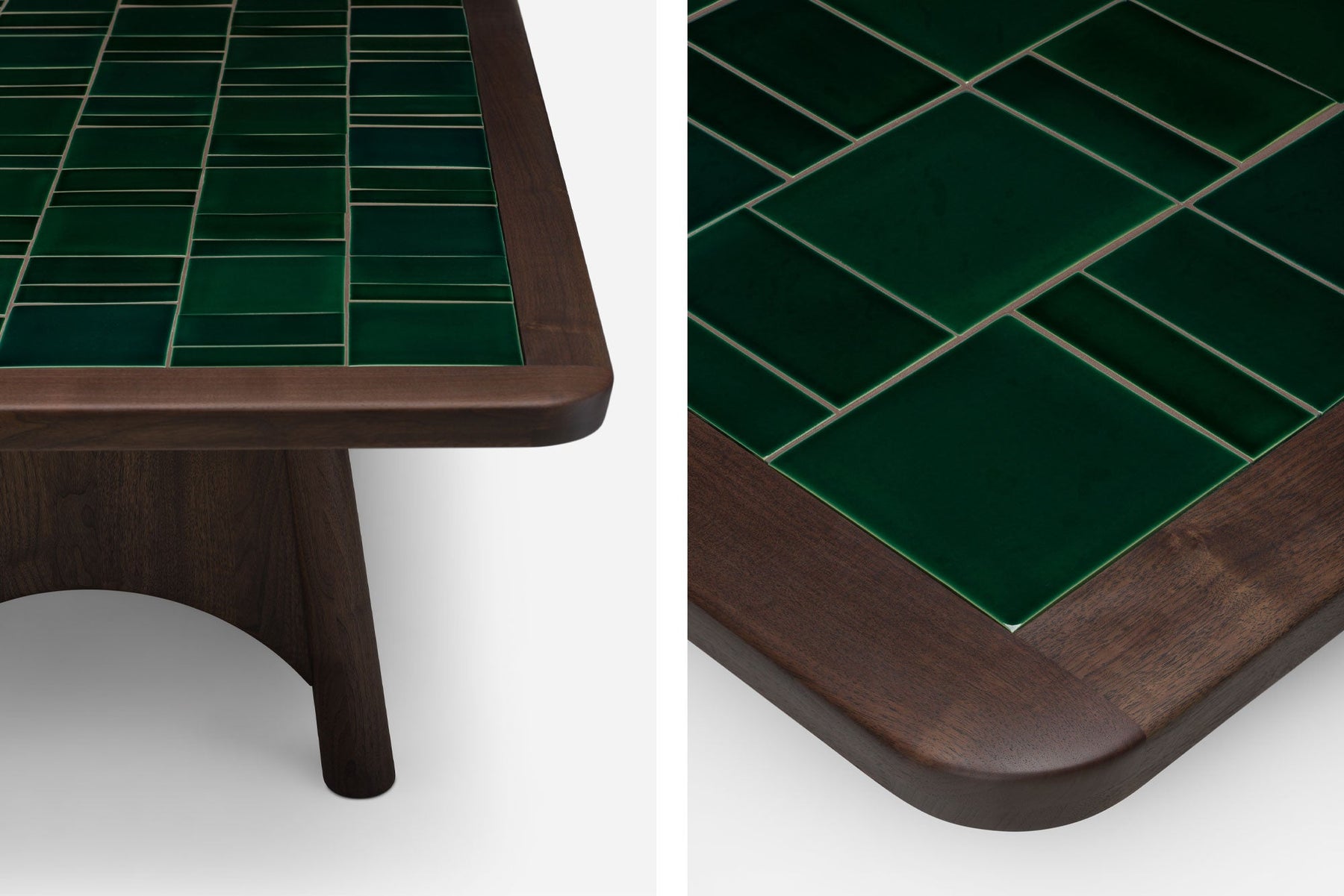 Available in black walnut, white oak, or ash in a range of finishes, and handmade Portuguese tiles. See menus below for further material information.